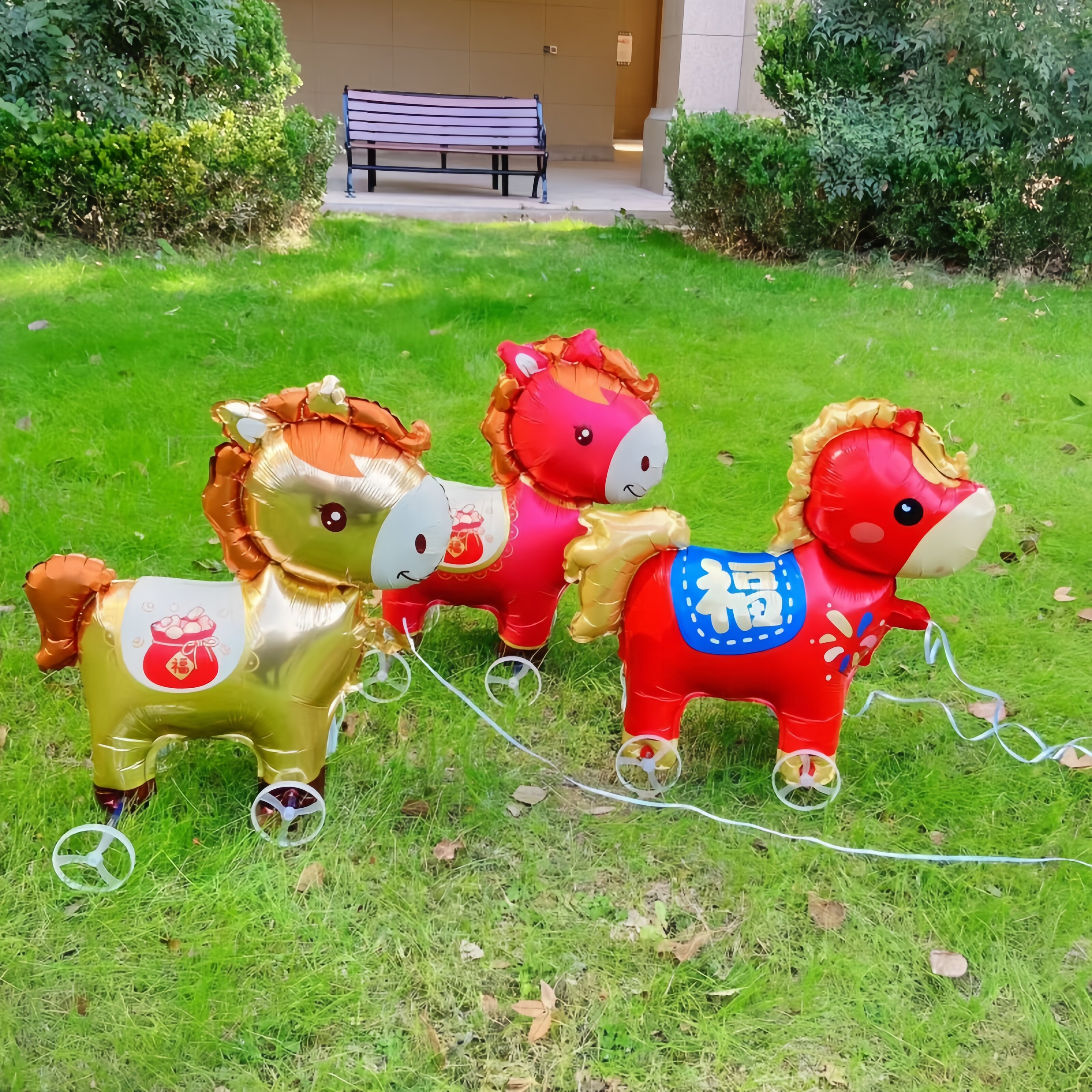 新年小马气球带轮子可以行走的马年气球儿童玩具过年礼物装饰布置