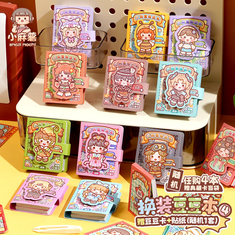 小麻薯贴纸书女孩儿童装饰小图案颜值高换装书可爱卡通安静书手工diy玩具免裁剪迷你换装贴纸画换装豆豆本子