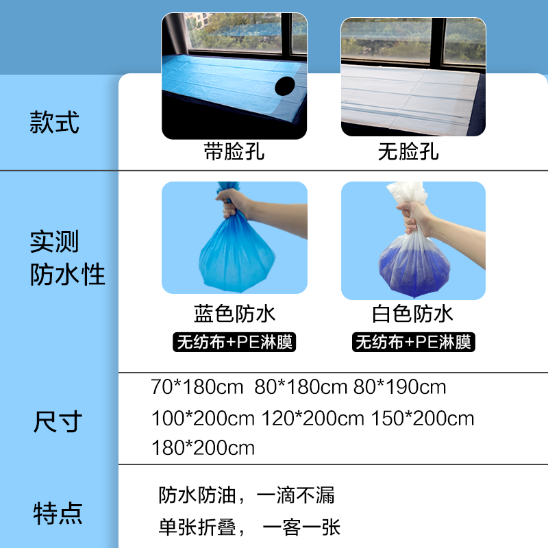 100张一次性床单加厚特厚防水防油按摩足浴带洞1米美容院推拿专用