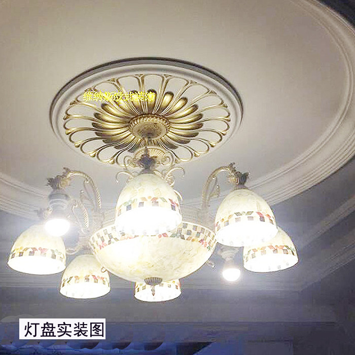 欧式灯盘PU吊顶灯池装饰材料天花板造型仿石膏线圆形雕花灯座现货