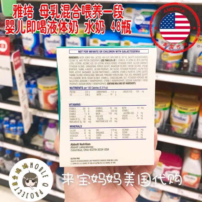 美国Similac 雅培一段母乳混合喂养婴儿即喝液体奶59ml水奶48瓶
