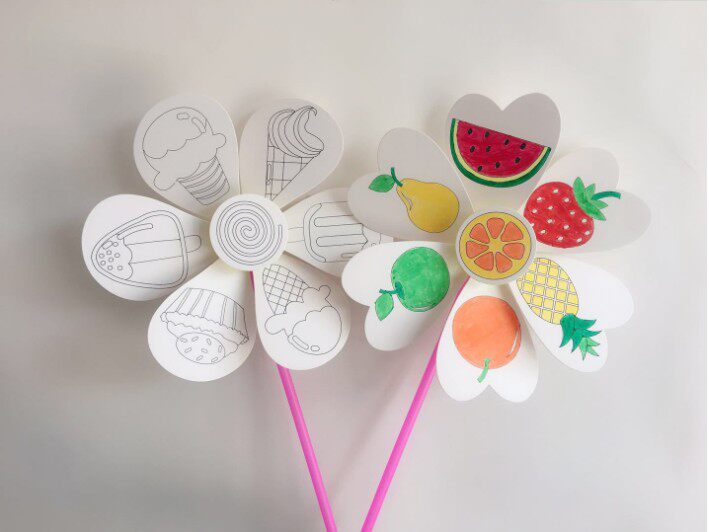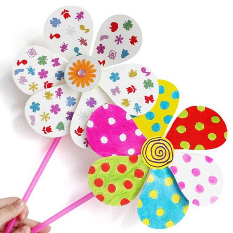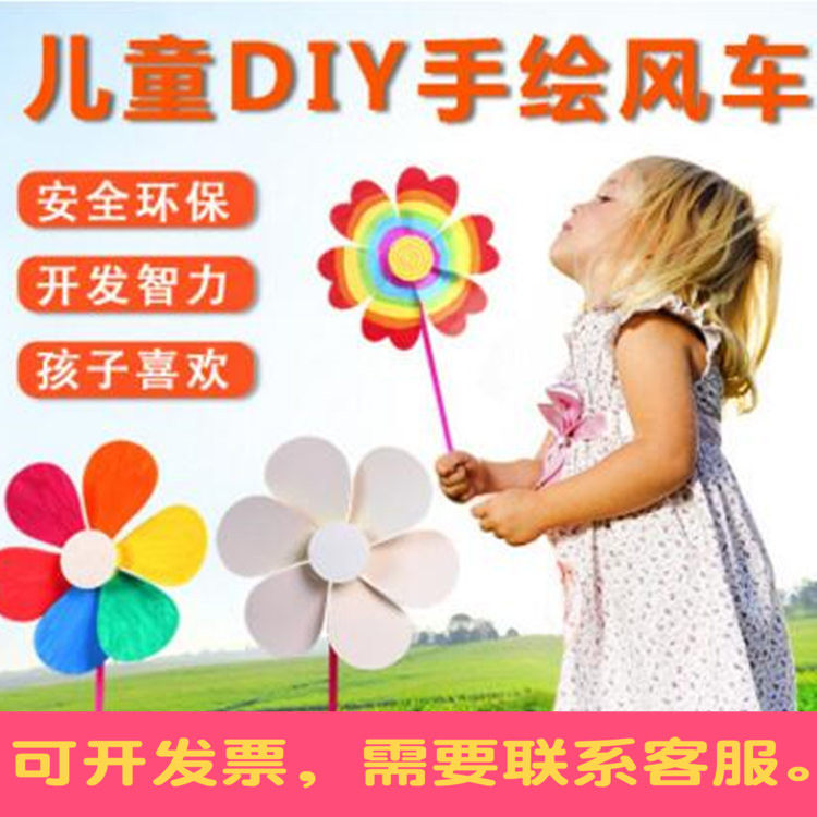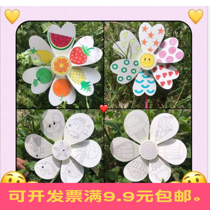 儿童节幼儿手工diy涂色空白风车美术材料制作早教制作卡通风车