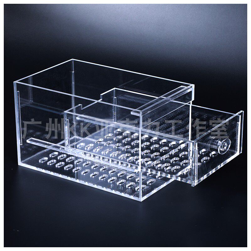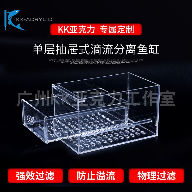 亚克力定制鱼缸底滤抽屉式滴流干湿分离盒溢流过滤盒雨淋盒滴流盒