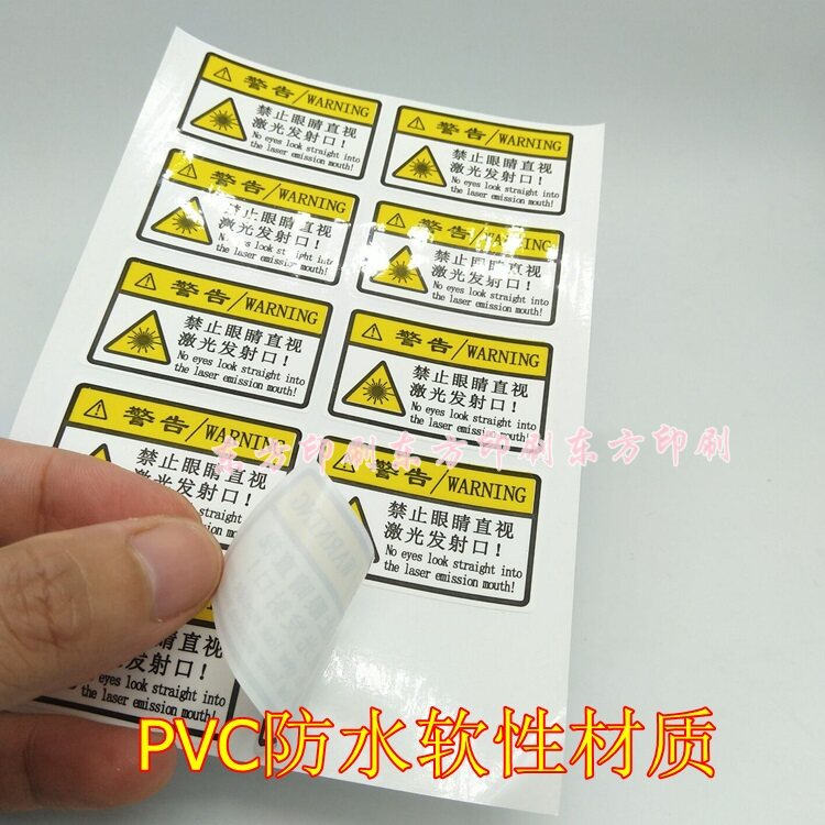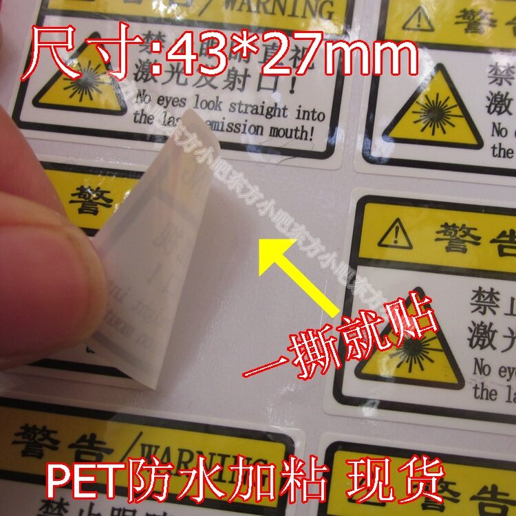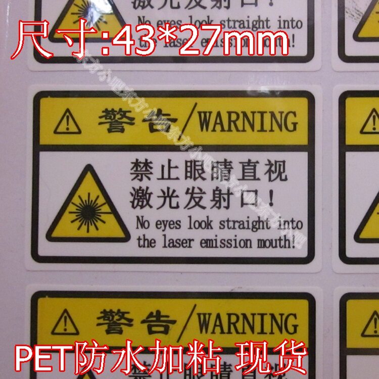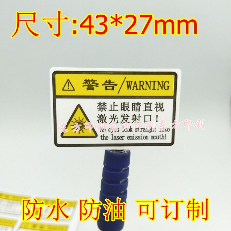 禁止眼睛直视激光发射口PET防水防油标签不干胶贴小心激光提示标