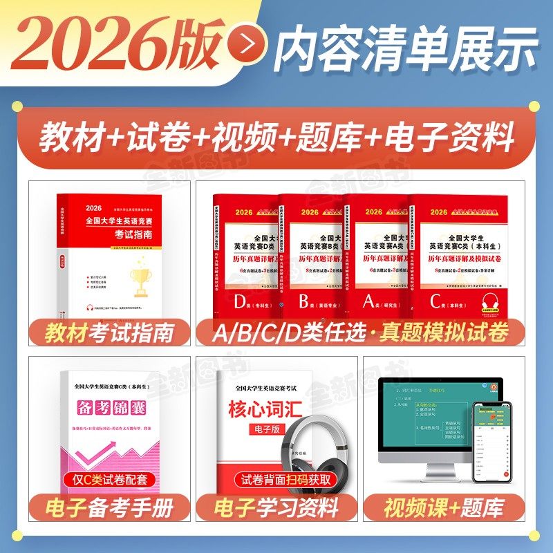 2026年全国大学生英语竞赛c类本科生考试指南教材历年真题及解析试卷词汇备考资料书官方2025初赛决赛大学neccs奥林匹克A大英赛B/D