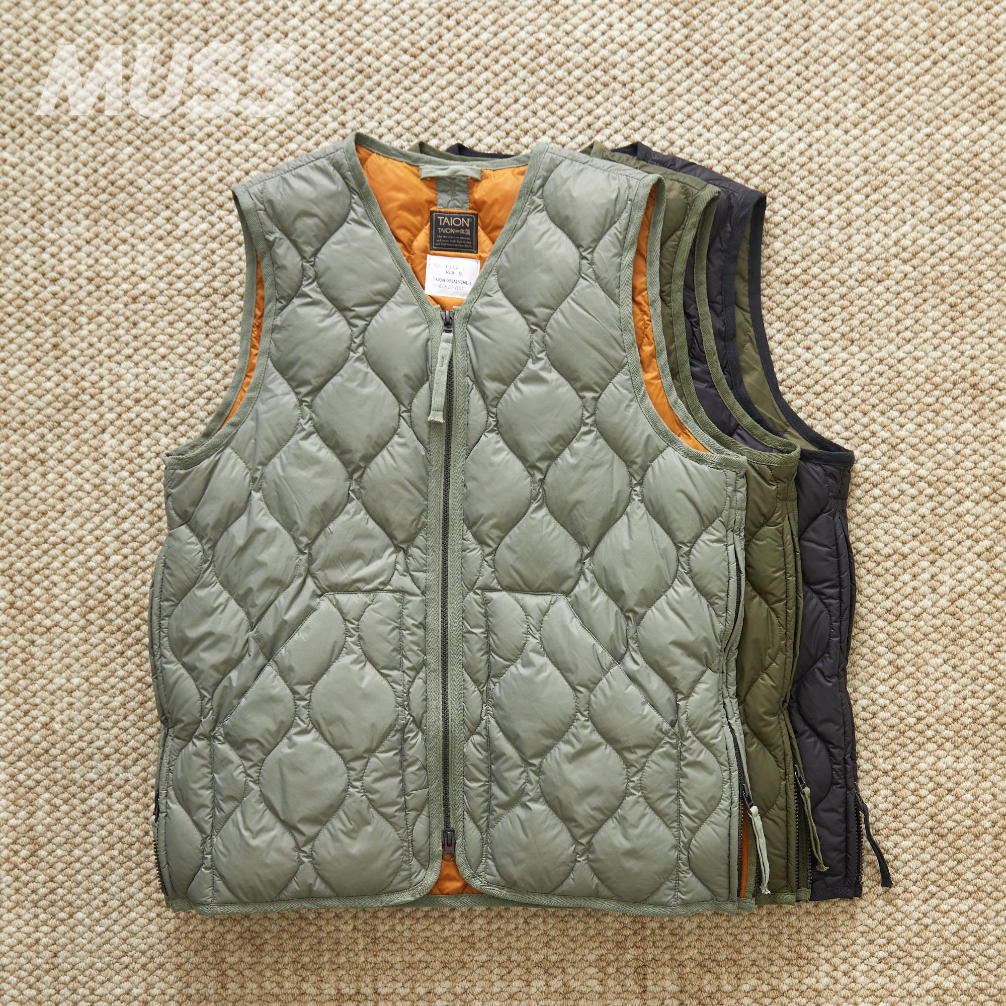 现货TAION MILITARY V-NECK DOWN VEST 军事线防撕裂绗缝羽绒马甲