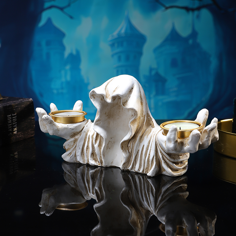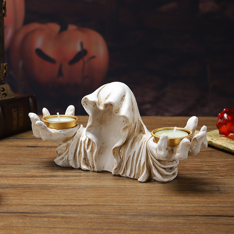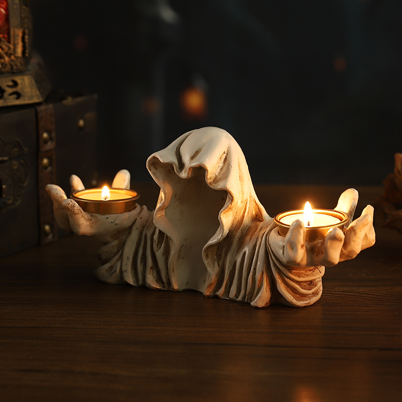欧式巫师烛台哥特摆件万圣节气氛复古装饰品创意树脂蜡烛灯台摆设