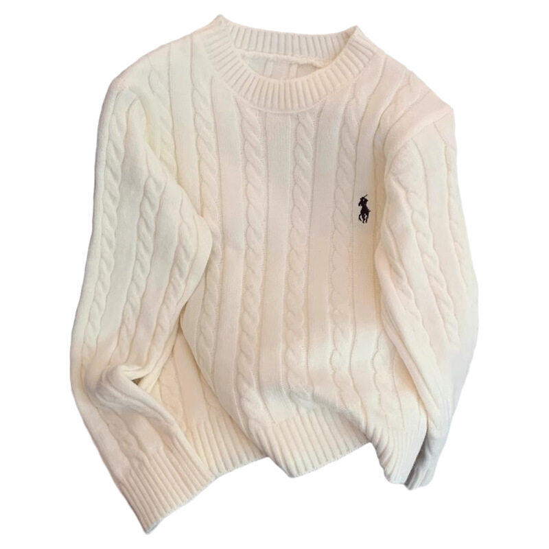 白色刺绣圆领麻花百搭针织衫套头大码内搭毛衣打底秋冬2025上衣