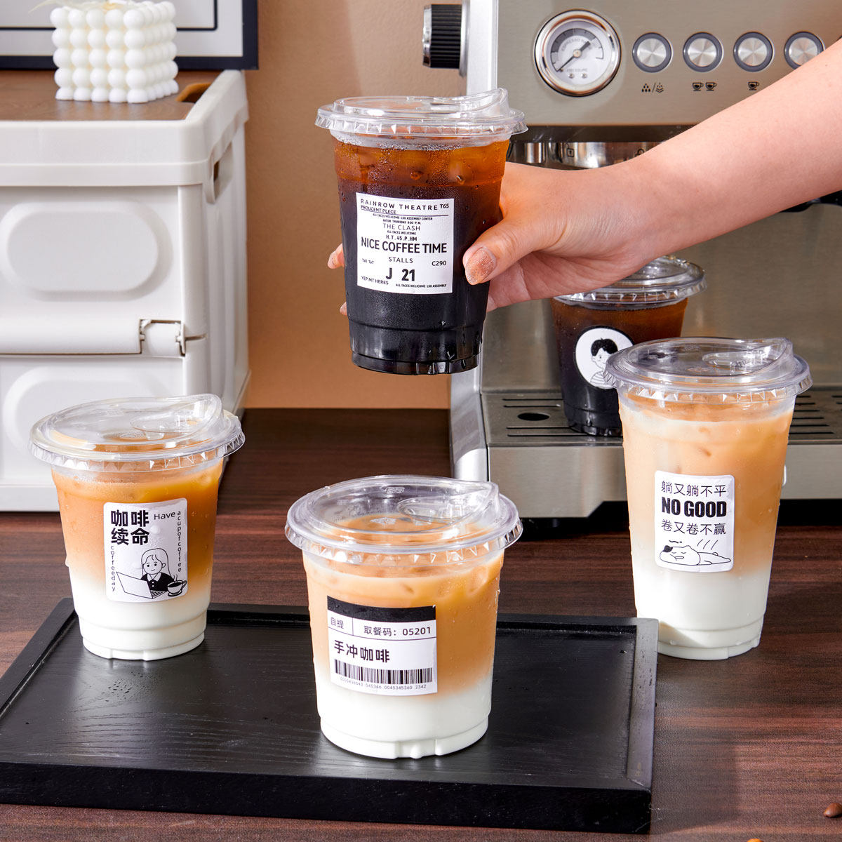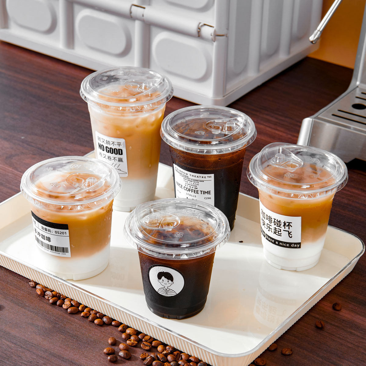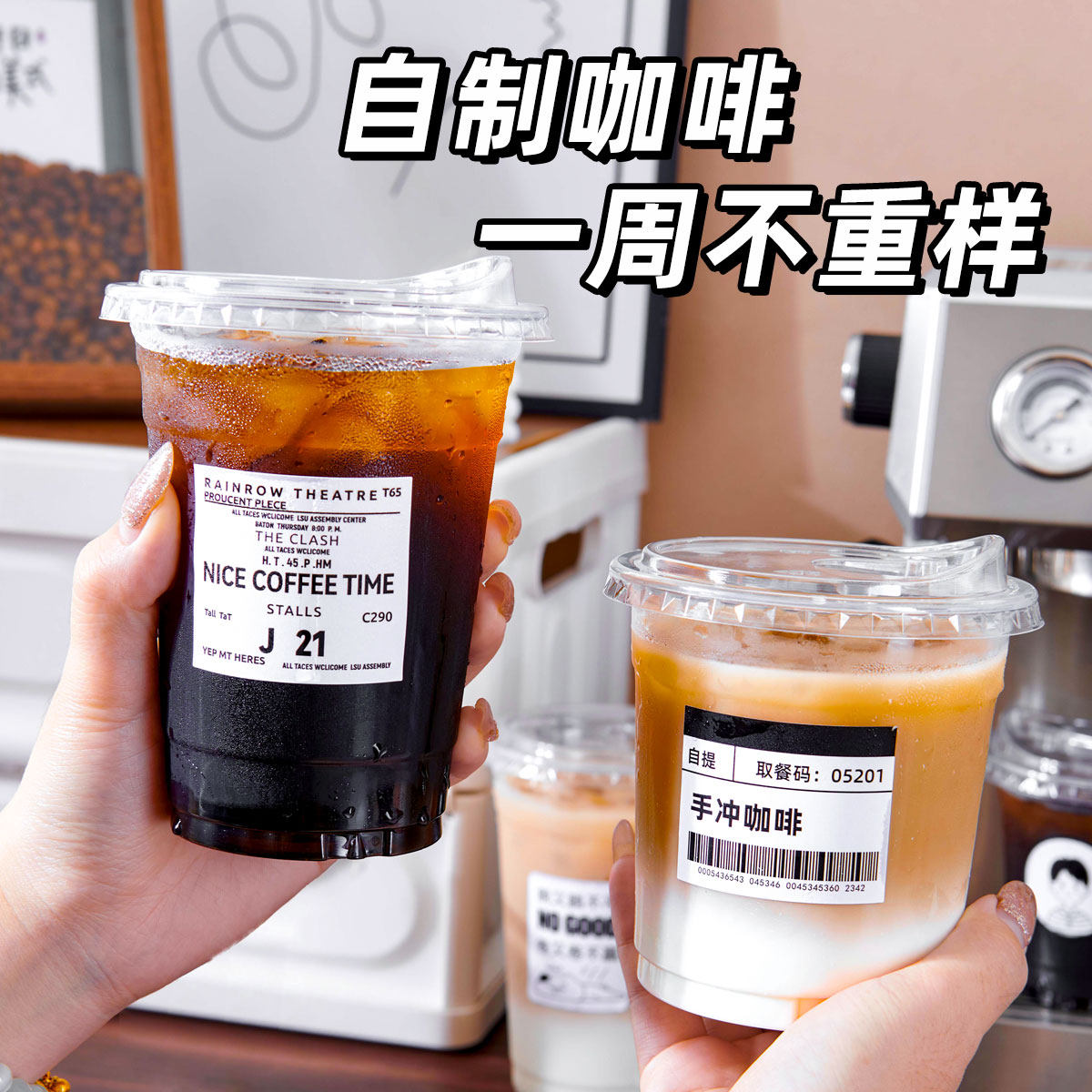 一次性咖啡杯带盖柠檬茶杯子网红自制奶茶饮品杯饮料透明打包杯