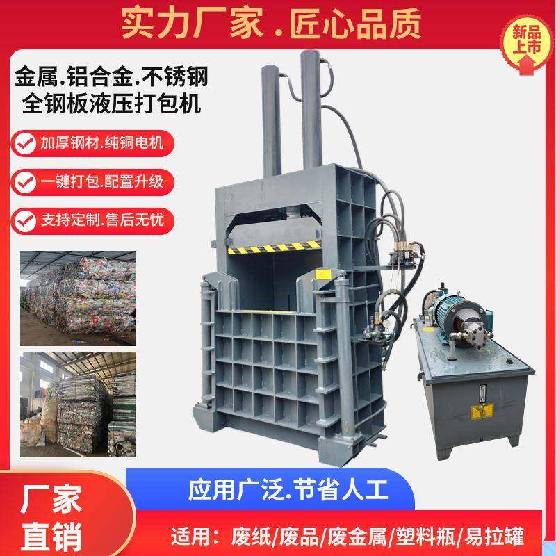 全钢板立式铝屑易拉罐油漆桶压扁机全新奶粉罐金属瓶液压打包机