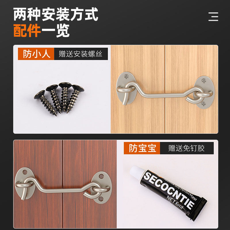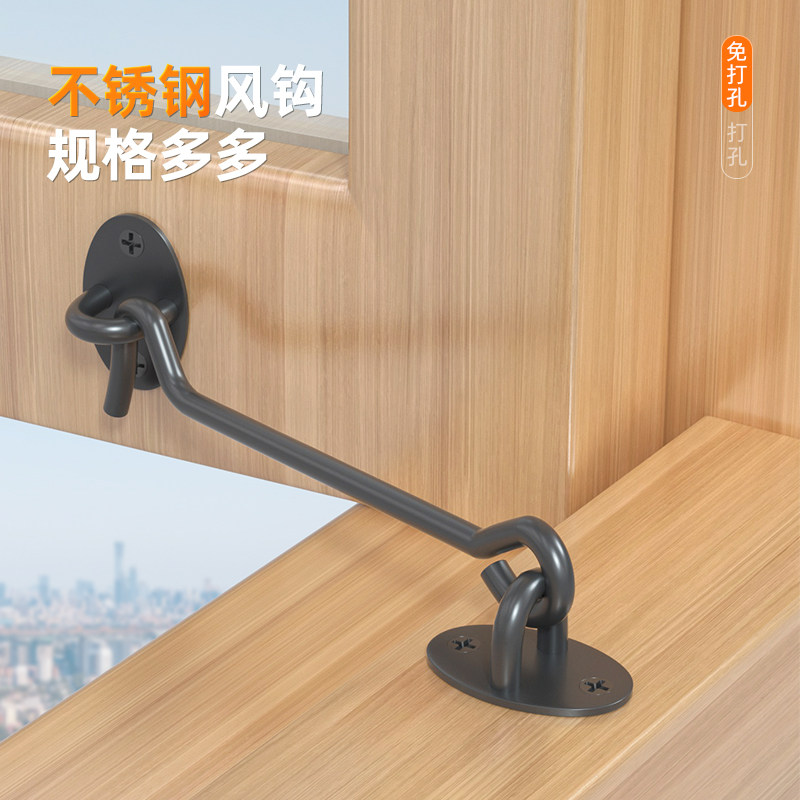 加厚不锈钢风勾免打孔门栓木窗锁扣卫生间窗户风钩搭扣锁钩子