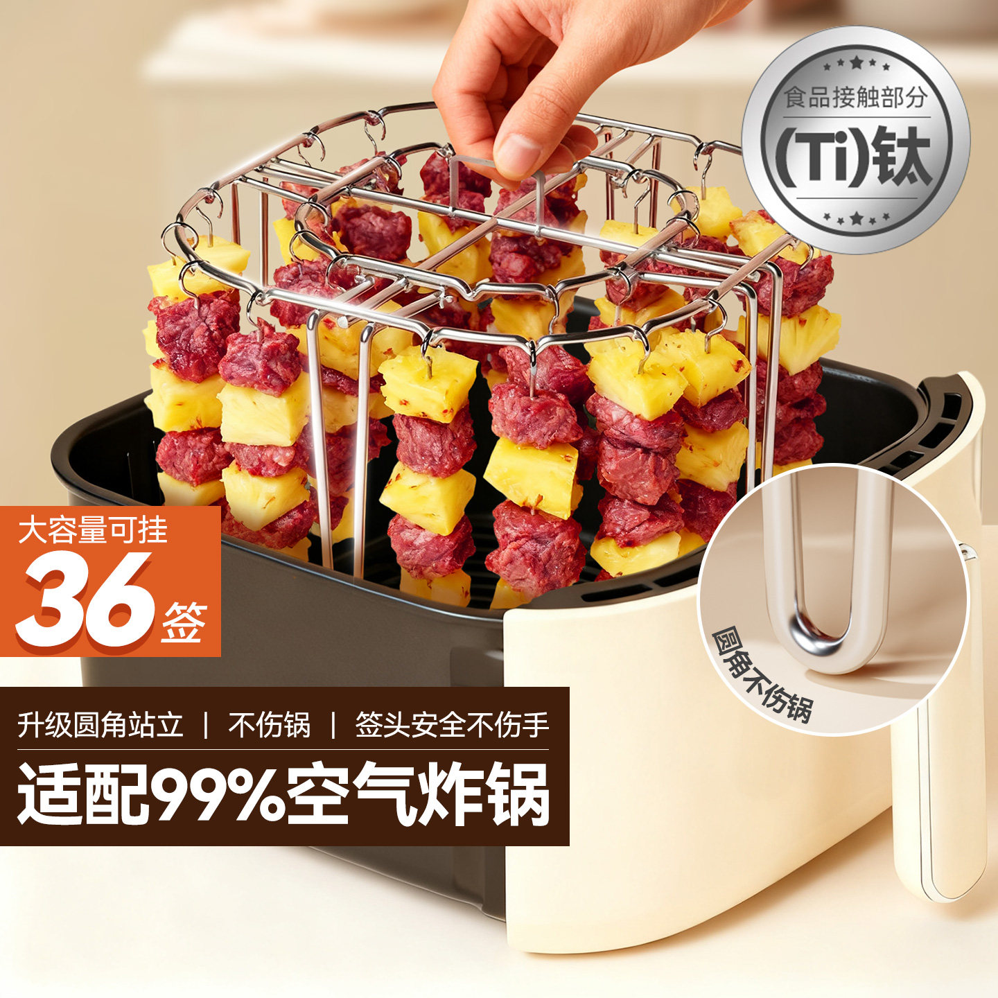 魔幻厨房家用不锈钢烤针空气炸锅烤架烤箱钛烤串架专用肉烧烤支架