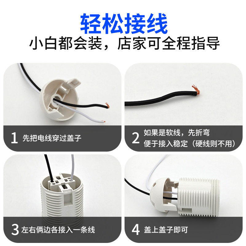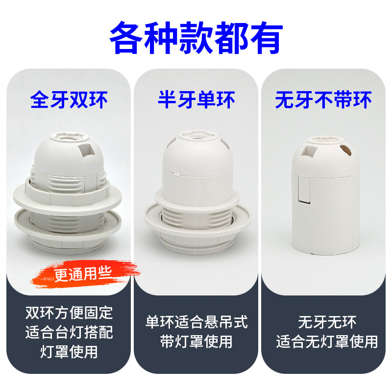 E27螺口台灯落地灯灯座头灯具配件吊灯展示厅卡扣式灯口嵌入式E14