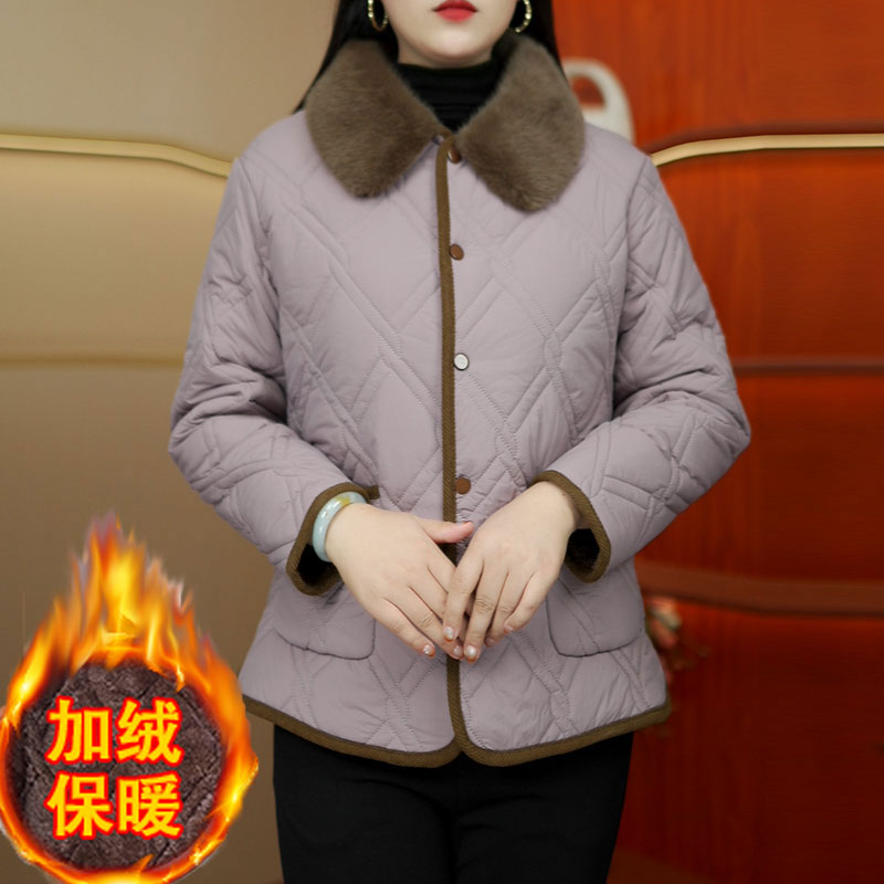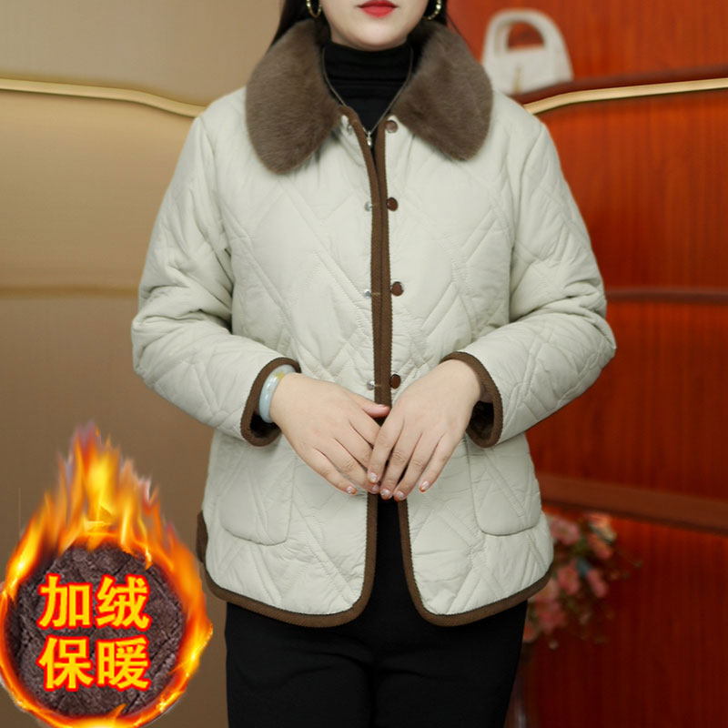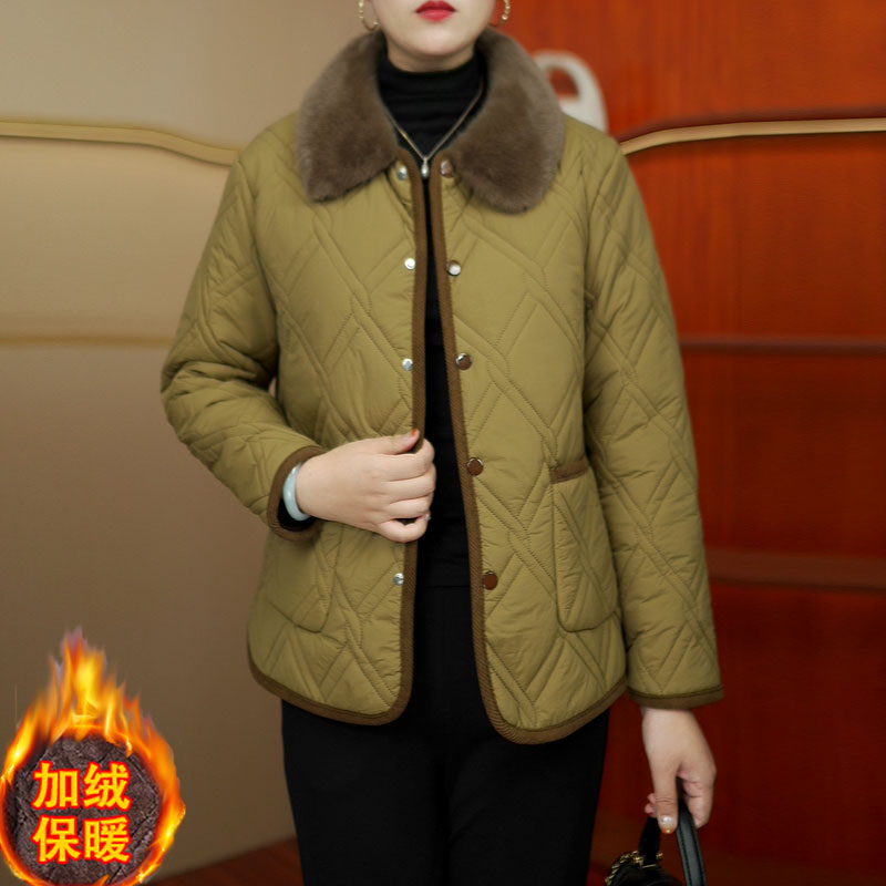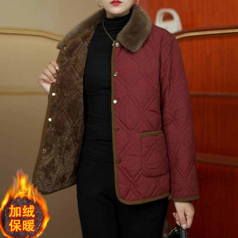 正品妈妈棉衣冬季新款加绒加厚气质高贵棉袄外套中老年女大码棉服