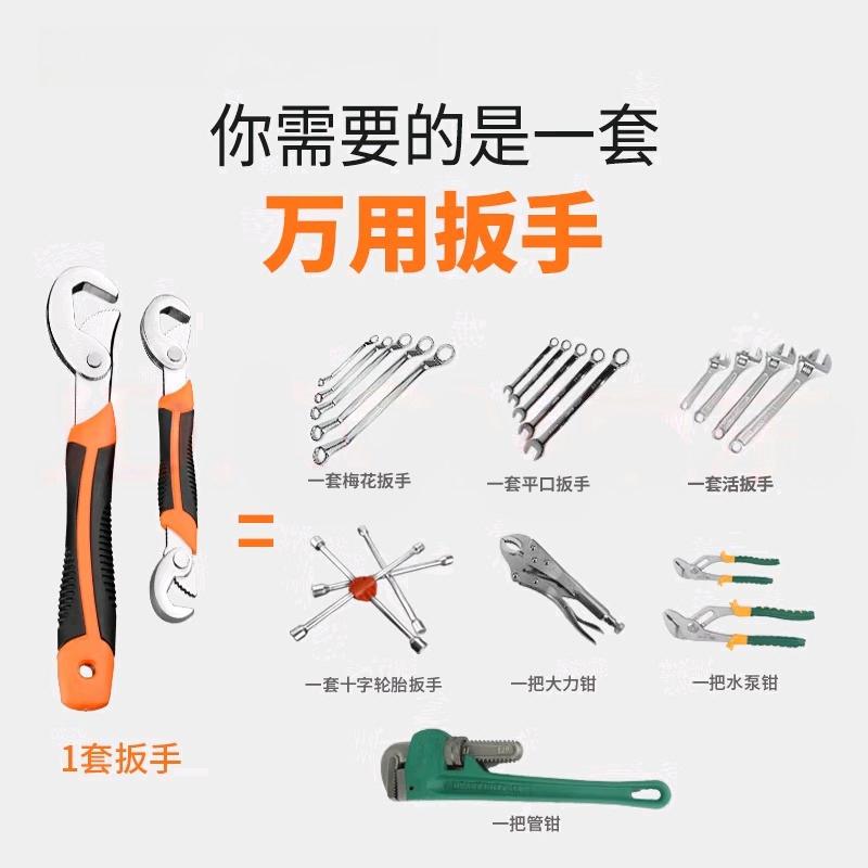 活动扳手工具套装万用活口管钳五金大全多功能大开口卫浴扳子全套