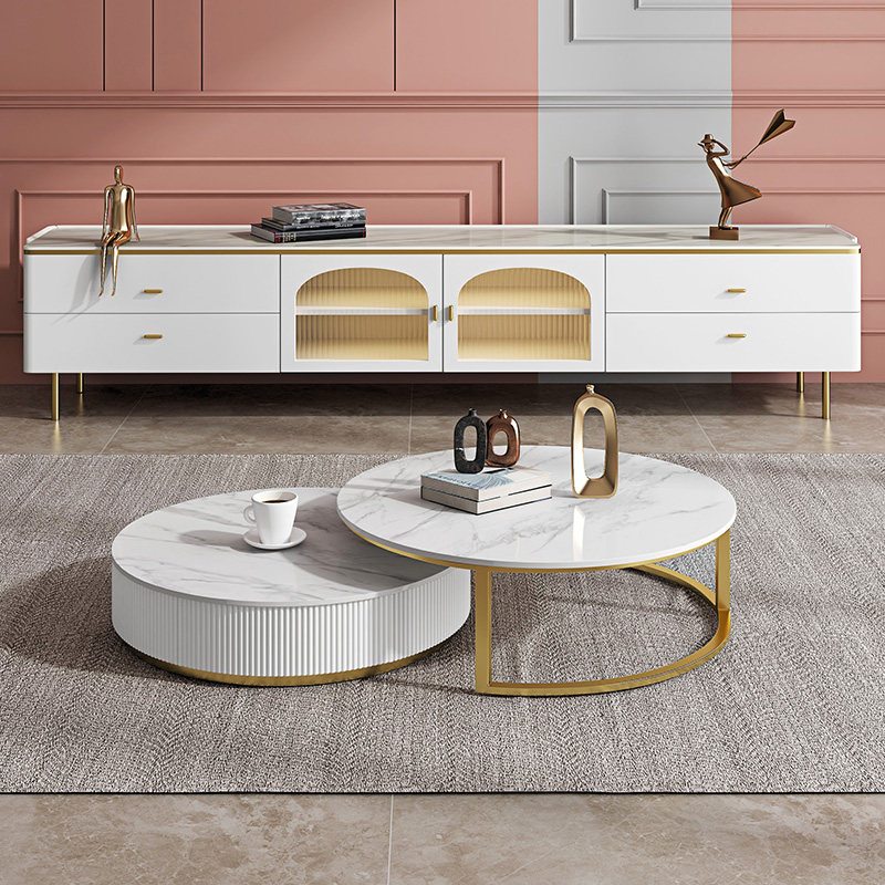 意式岩板茶几电视柜组合北欧圆形大小户型轻奢风现代简约储物茶桌