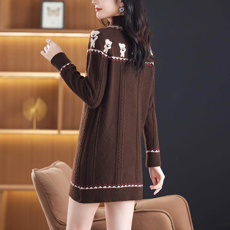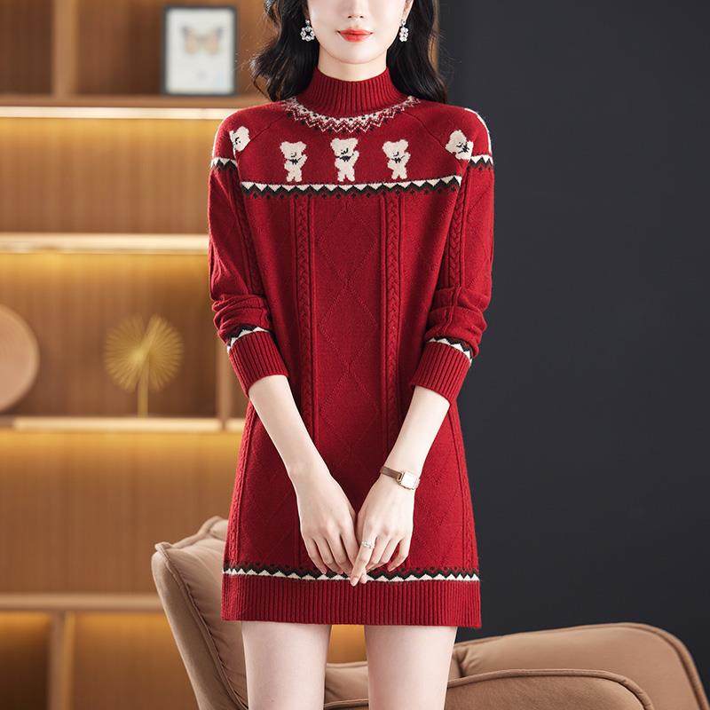 中长款毛衣裙女士秋冬2025新款中年妈妈遮屁股洋气加厚针织打底衫