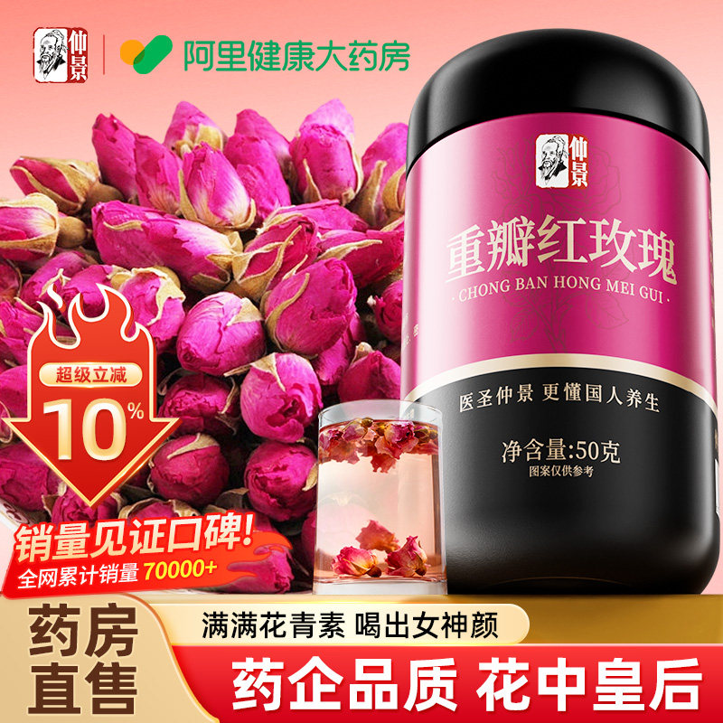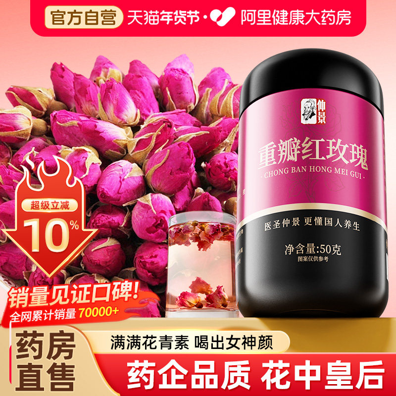 张仲景玫瑰花茶官方旗舰店正品重瓣玫瑰花干疏肝解郁中葯材泡水喝