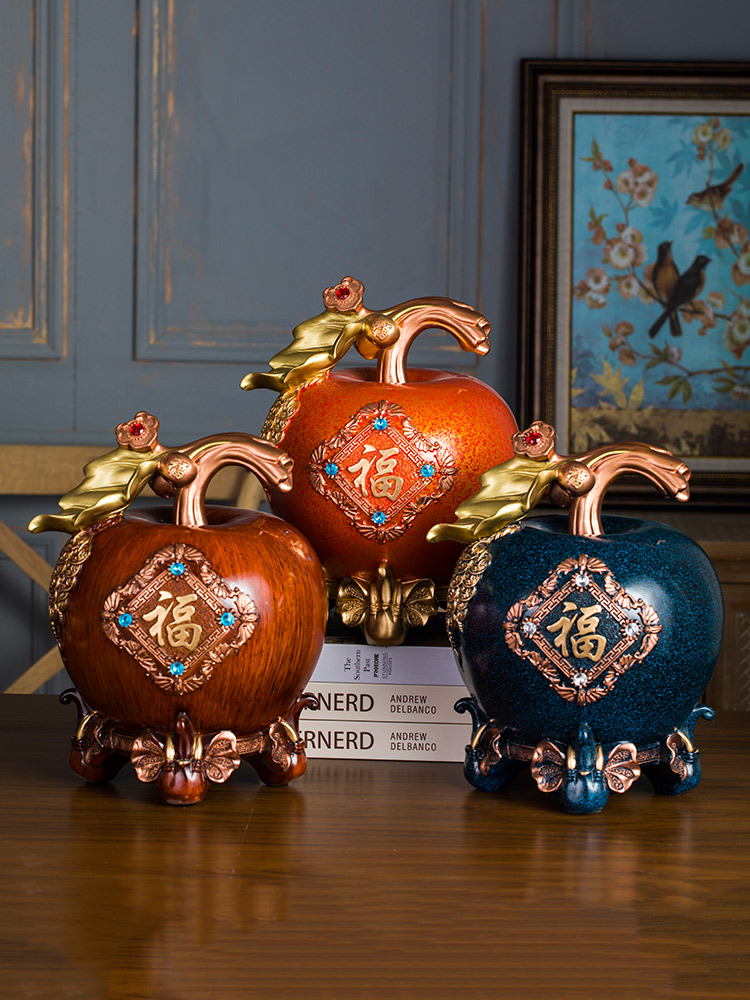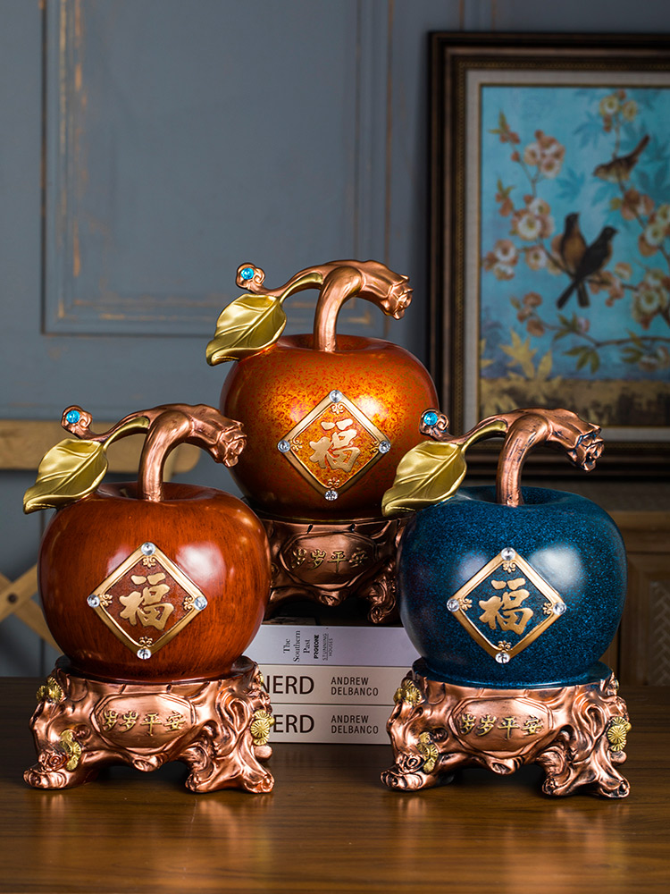 中式苹果摆件儿童存钱罐家居客厅装饰节庆用品乔迁开业创意礼品