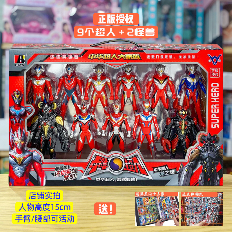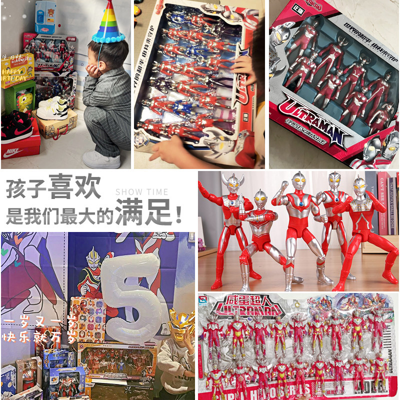 正版奥特玩具礼盒装初代泰罗艾斯超人偶儿童变身器软胶怪兽套装男