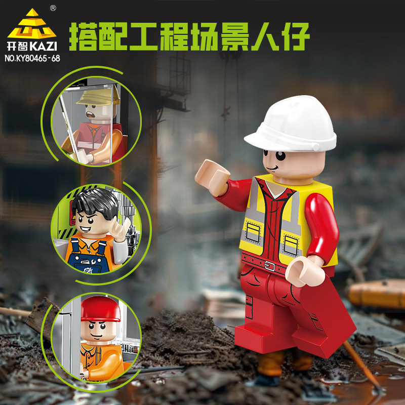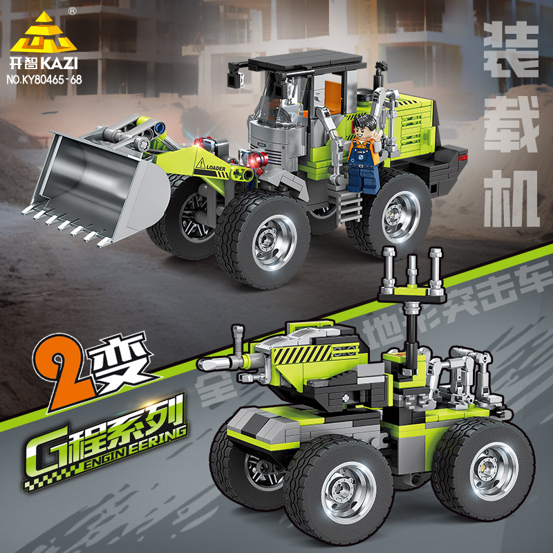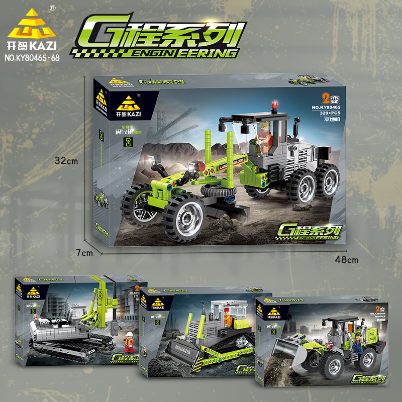 开智积木工程车平地机装载推土旋钻机组装模型男孩小颗粒拼装玩具
