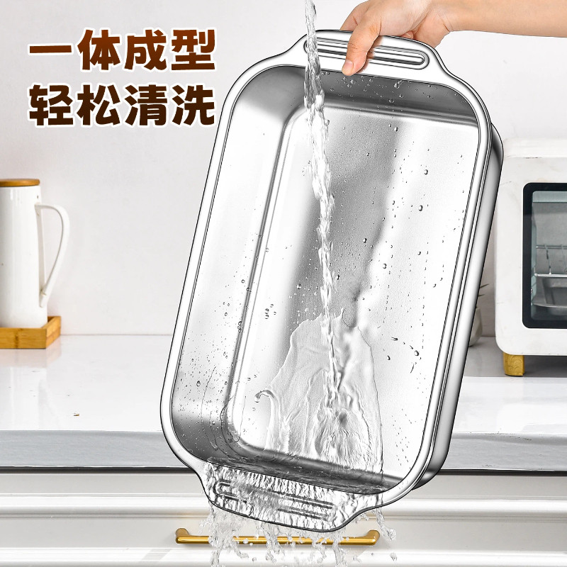 食品级加厚不锈钢托盘长方形盘子家用方盘商用烤鱼盘铁盘子烧烤盘