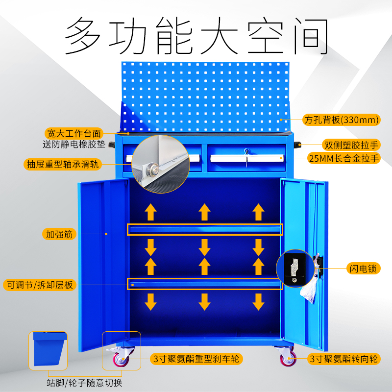 五金工具车重型双开门抽屉式工具柜车间用汽修工具柜加大零件车