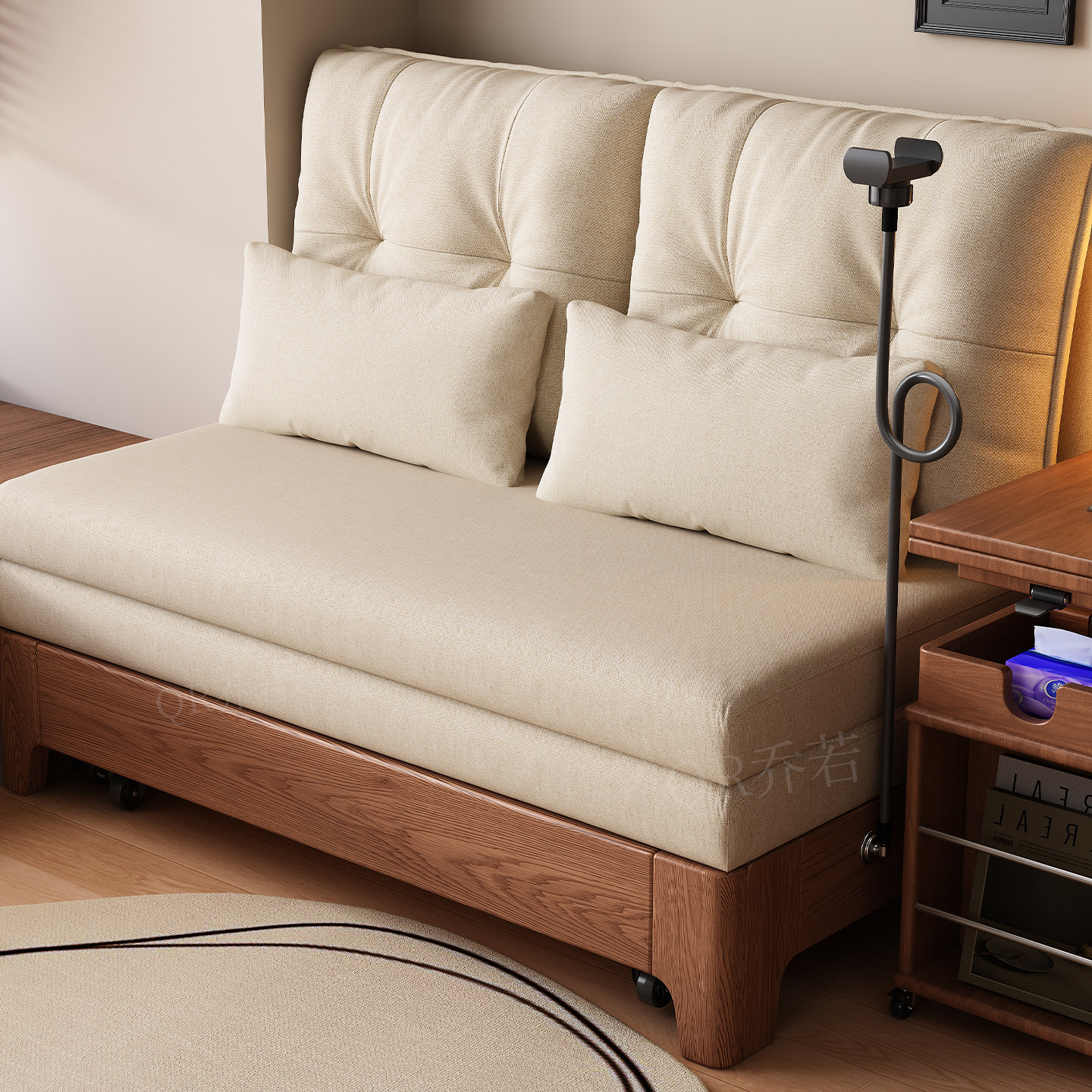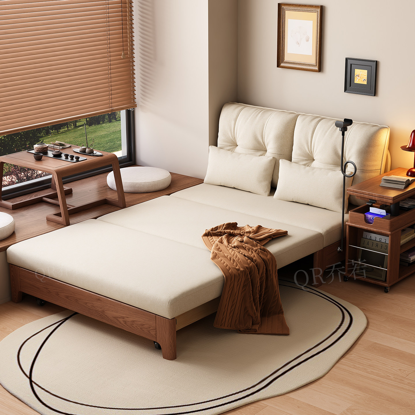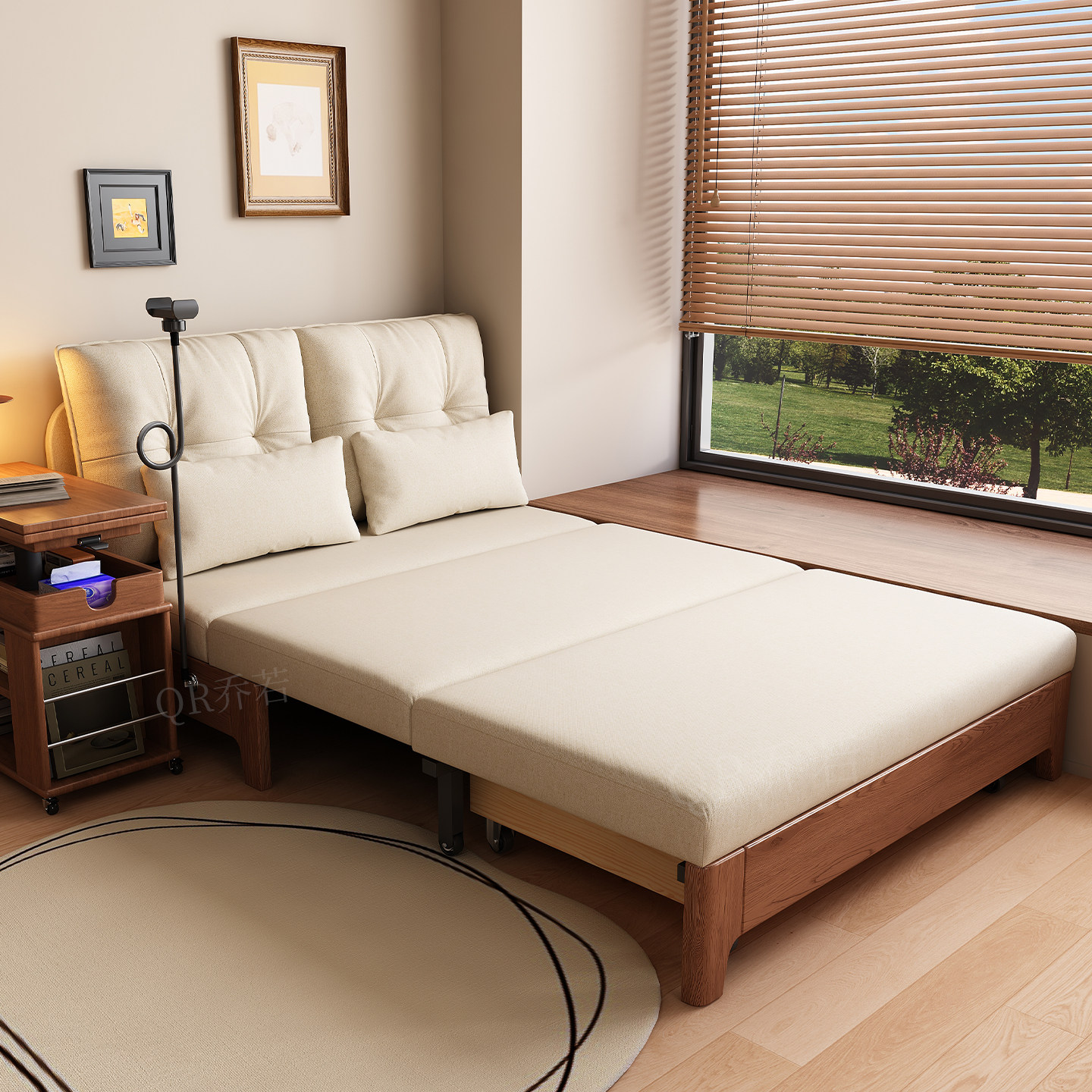 实木沙发床现代简约可折叠床北欧小户型客厅书房阳台两用双人沙发