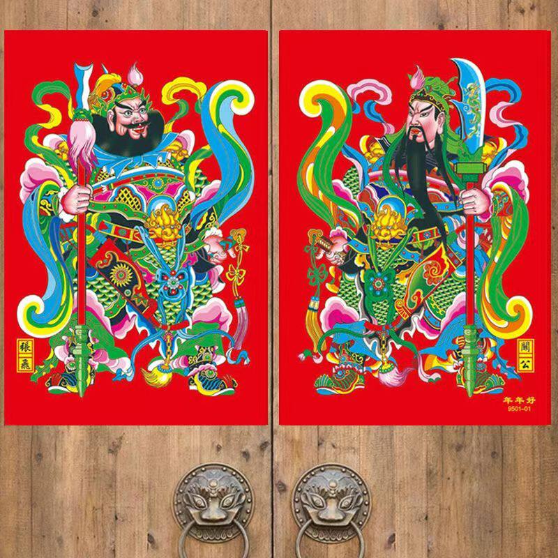 2026五行镇宅门神门贴福字保家秦叔宝尉迟恭年画大门张飞关羽批发
