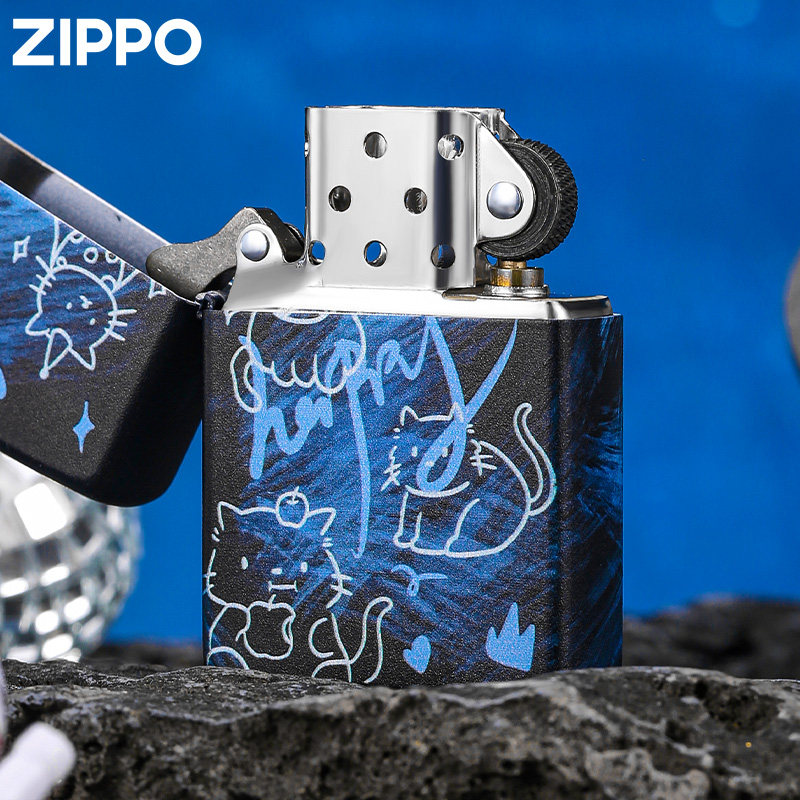 zippo正品打火机猫猫派对官方旗舰店外壳防风煤油送男友礼物可爱