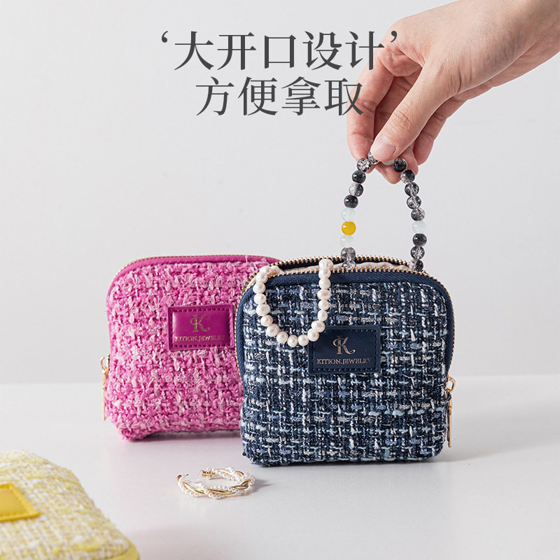 小香风首饰收纳包便携美观旅行耳钉 戒指饰品盒 时尚迷你首饰袋