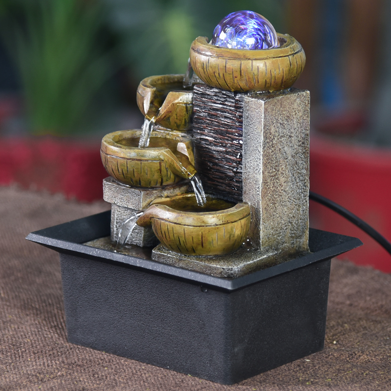 桌面流水喷泉循环水养鱼装饰品客厅办公室茶桌八方来财风水球摆件