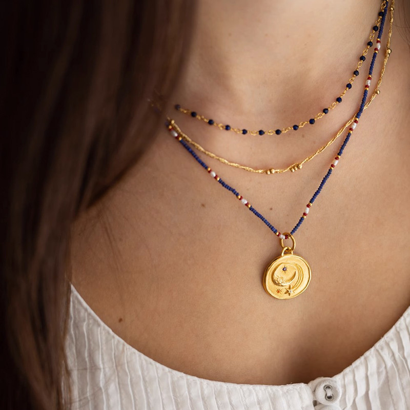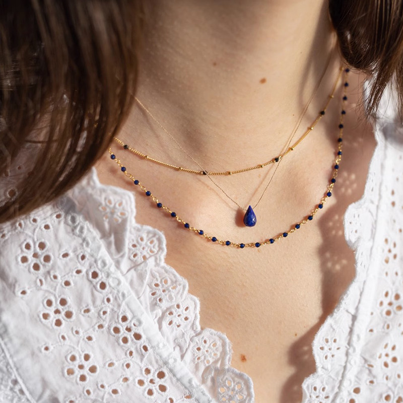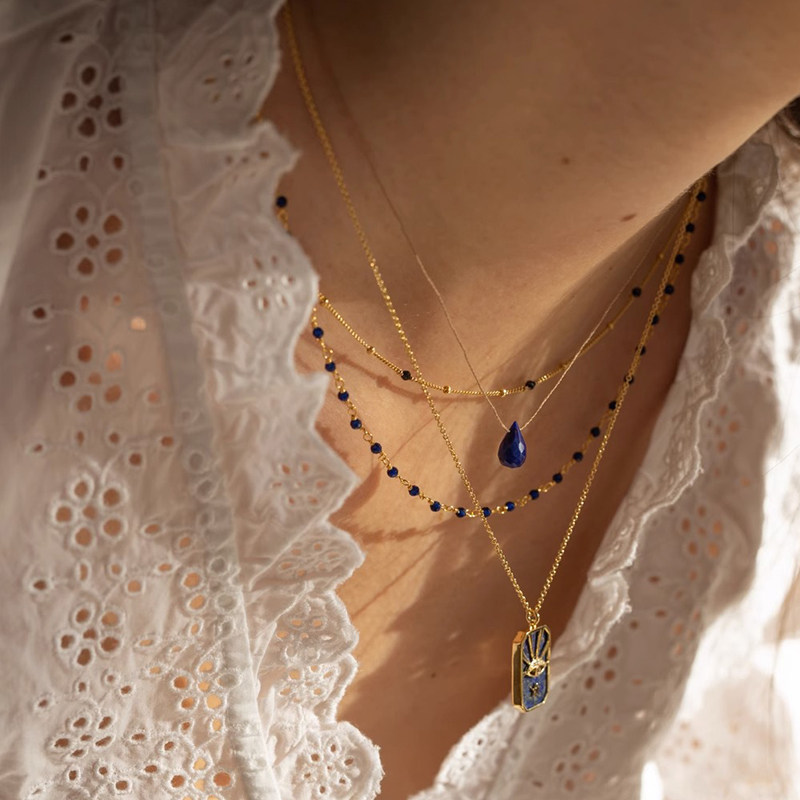 法国小众Une a une 深蓝色黑色切面水晶镀金串珠项链锁骨链