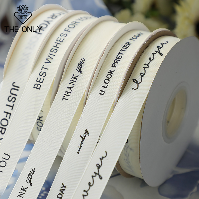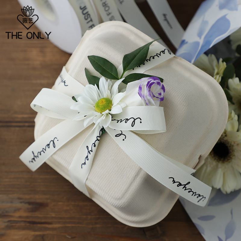 薇艺简约英文螺纹丝带字母涤纶彩带鲜花花束包花缎带蛋糕烘焙绑带