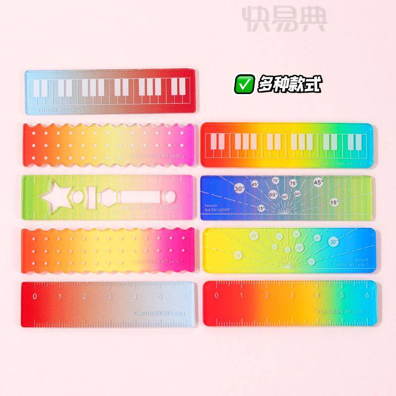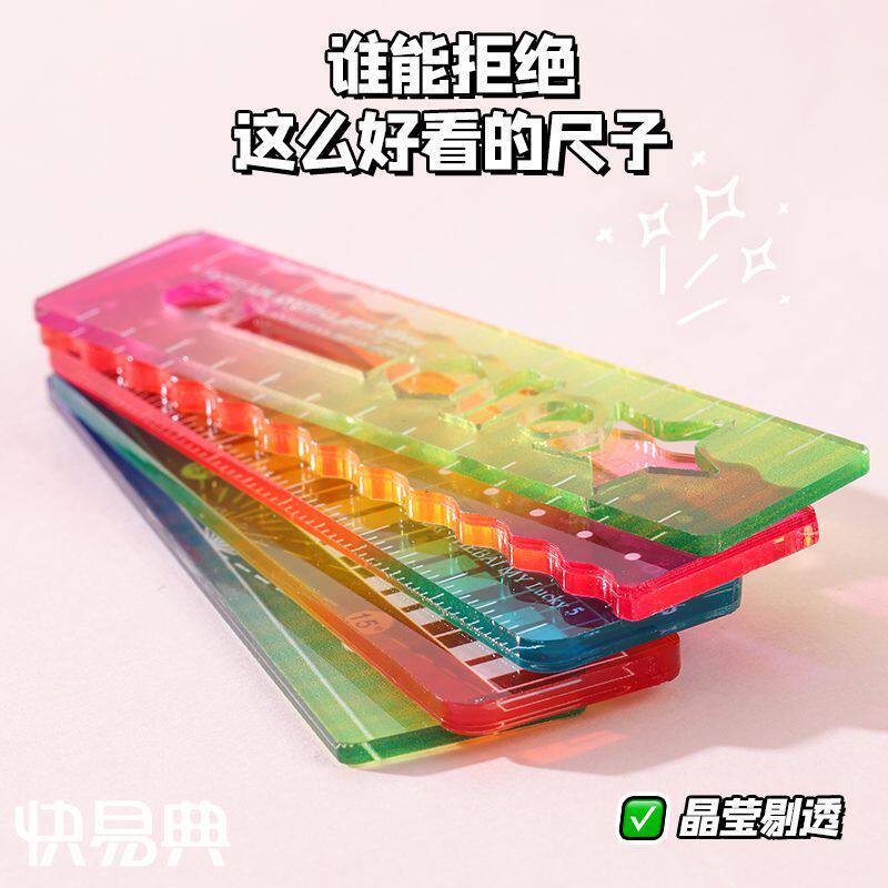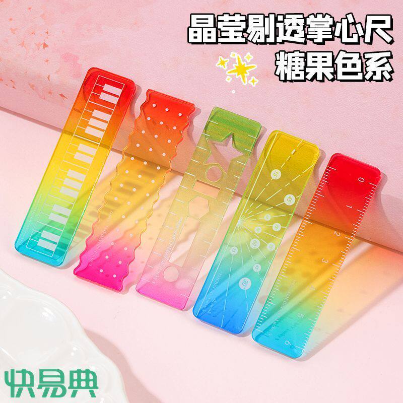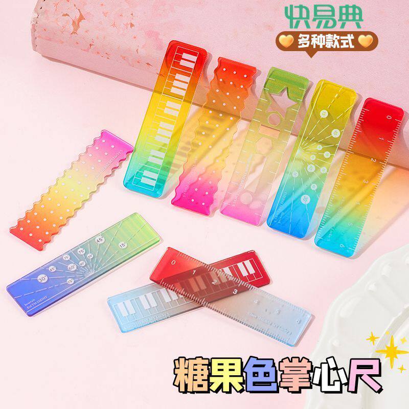 快易典糖果彩色透明透光掌心尺波浪测量绘画钢琴文具各类尺三角板