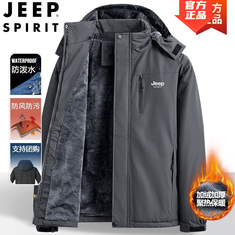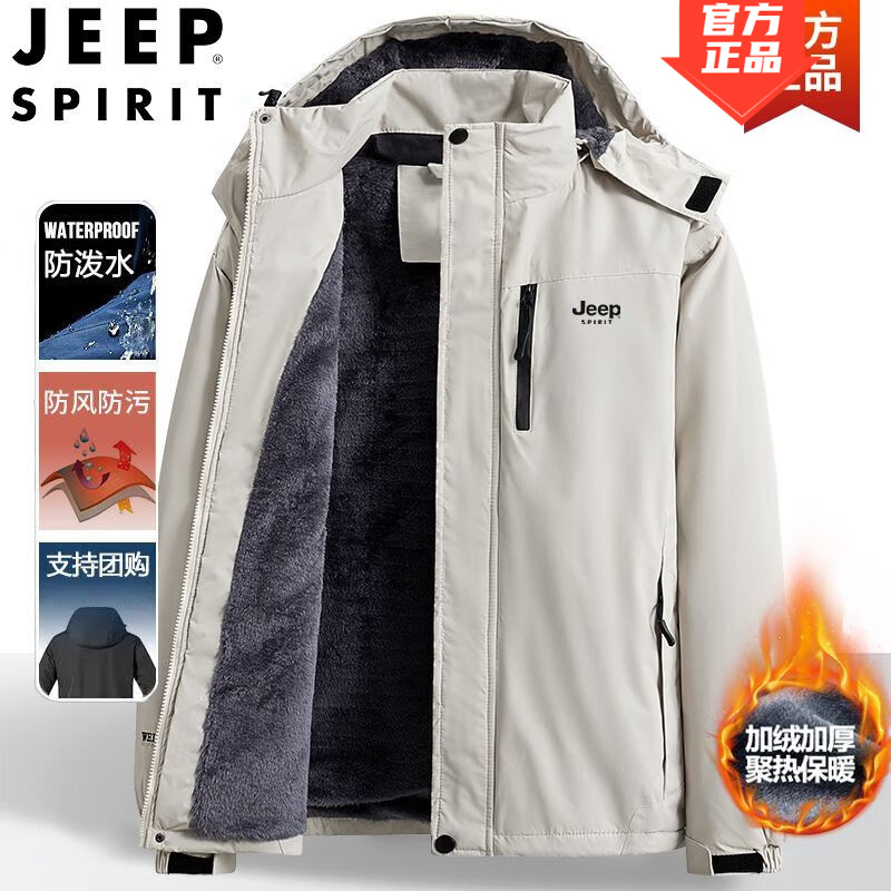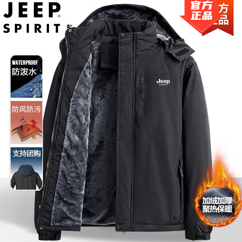 JEEP棉服男外套男秋冬季防风加绒羽棉服袄绒服加厚保暖时尚棉衣