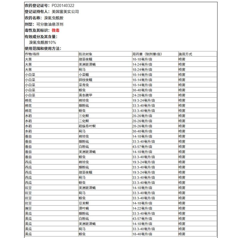 富美实倍内威10%溴氰虫酰胺 蚜虫蓟马棉铃虫菜青虫粉虱农药杀虫剂