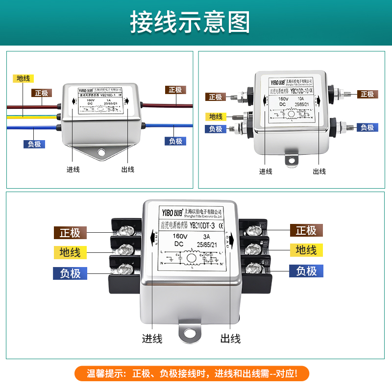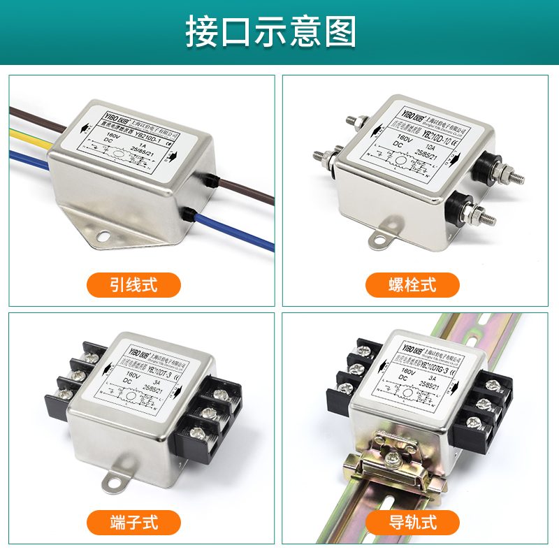 12V24V36V48V220VDC以伯EMI直流电源滤波器YB210D-1A3A5A6A10A20A