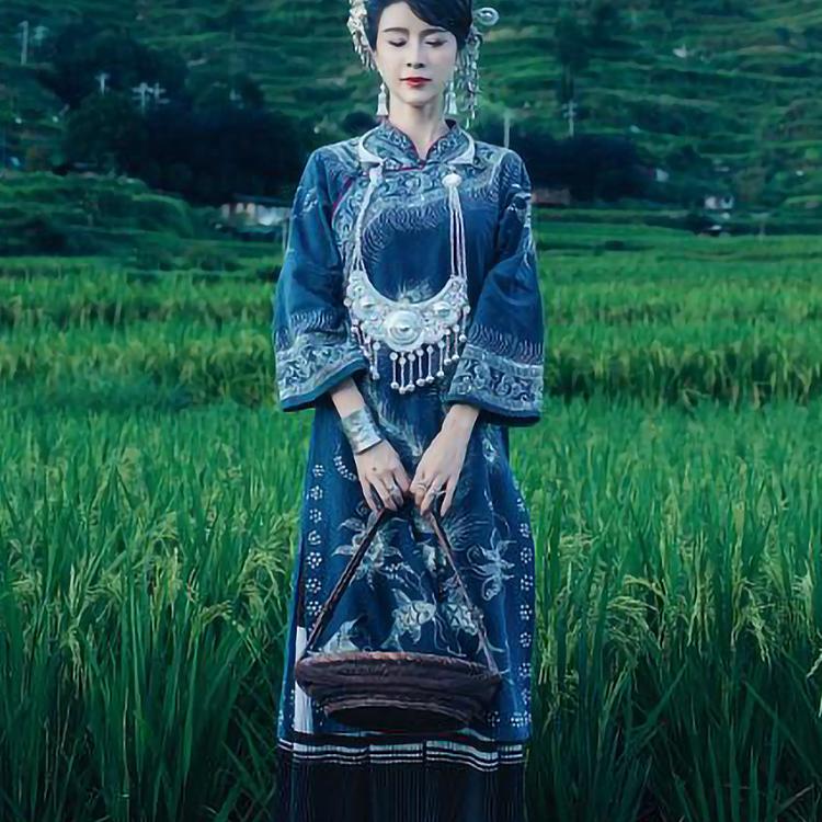 黔东南村超手工画图蜡染服装女中式民族风苗族蜡染旗袍重工服饰新