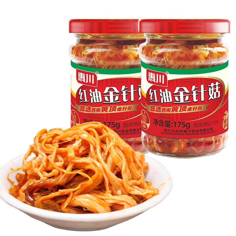 惠川红油金针菇175g*12瓶 四川香辣罐装金针菇开味菜下饭菜整箱
