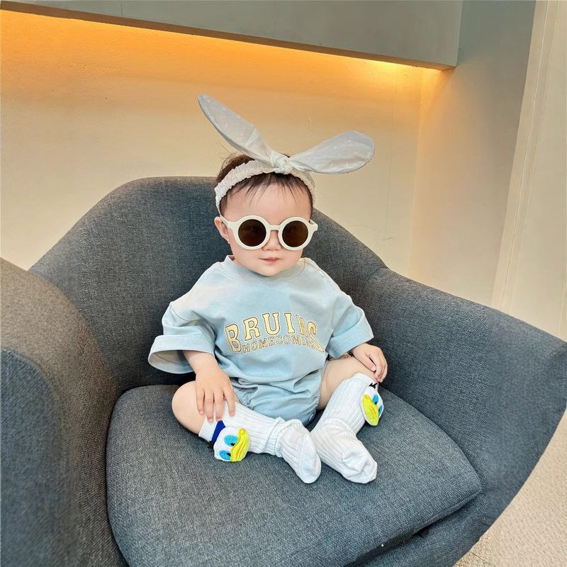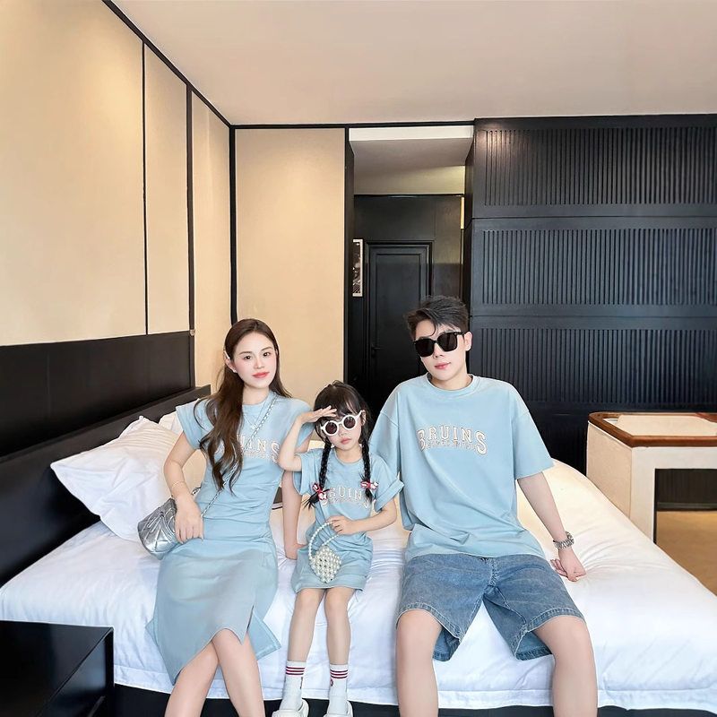 2025夏季新款显瘦亲子字母飞袖韩版亲子装母子母女婴儿童装连衣裙