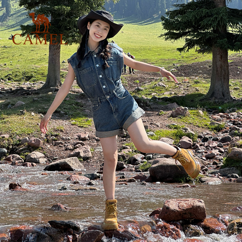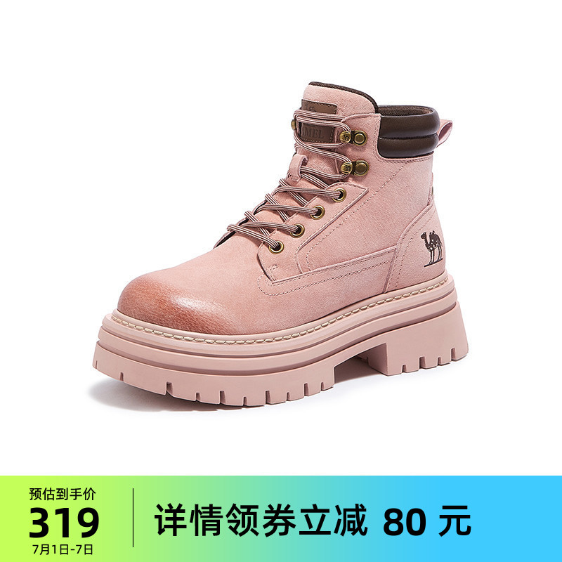 骆驼马丁靴女鞋2024秋季新款户外英伦大黄靴女款厚底短靴工装靴子
