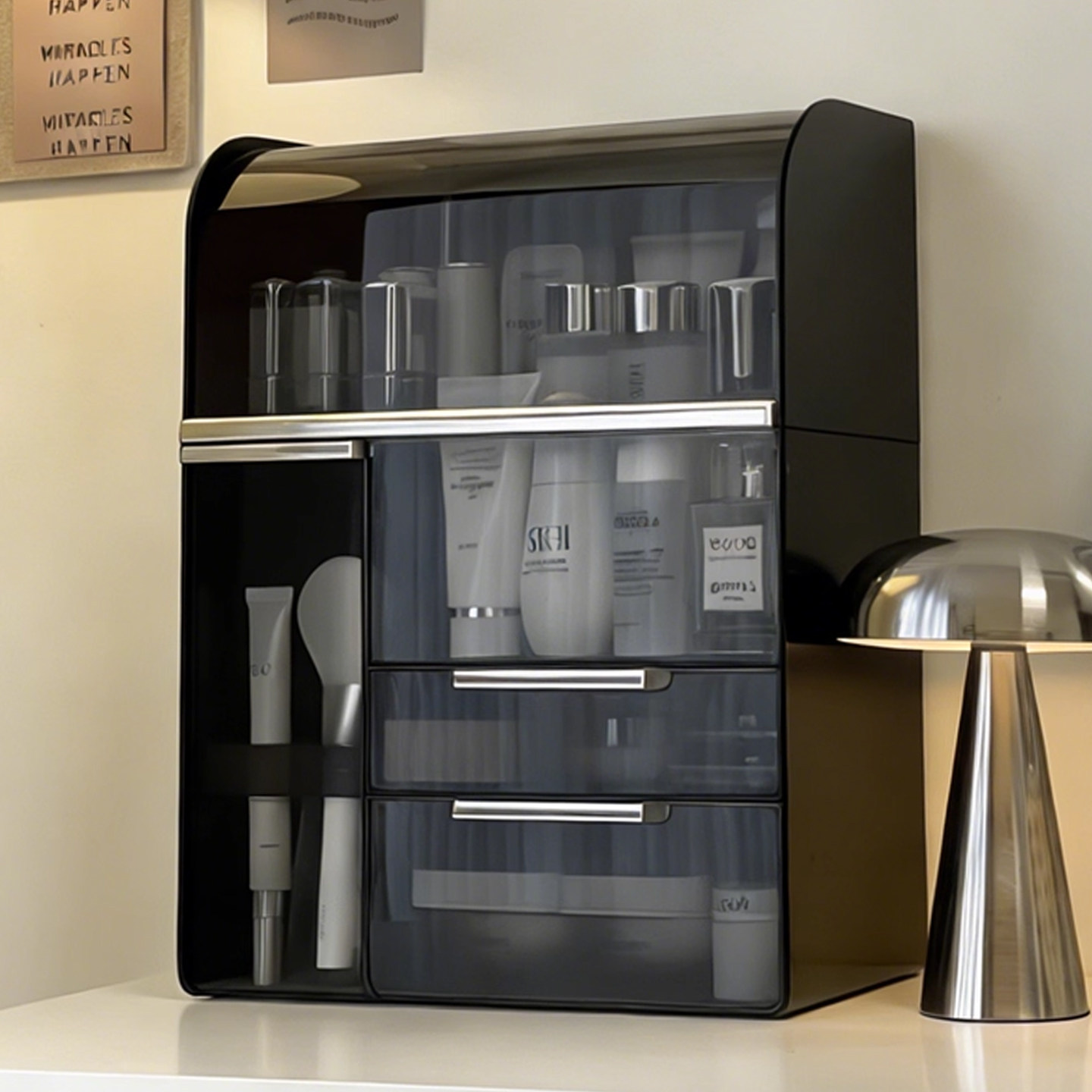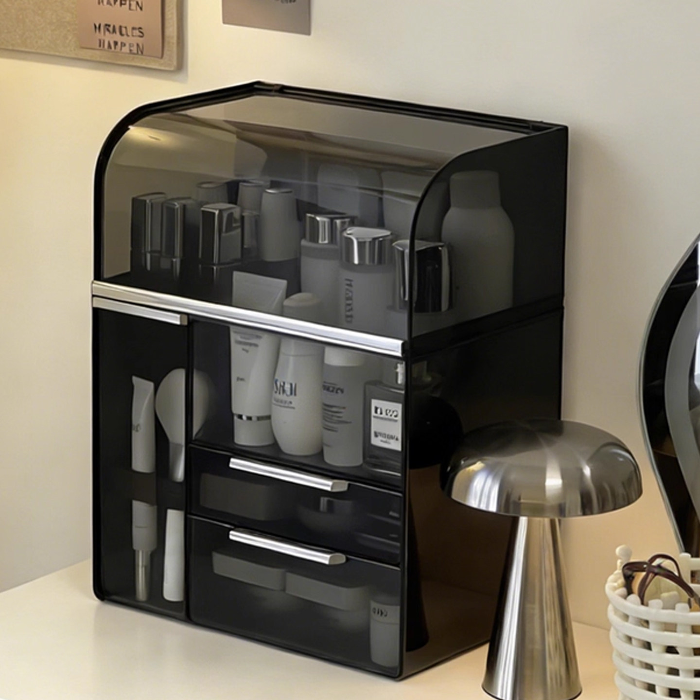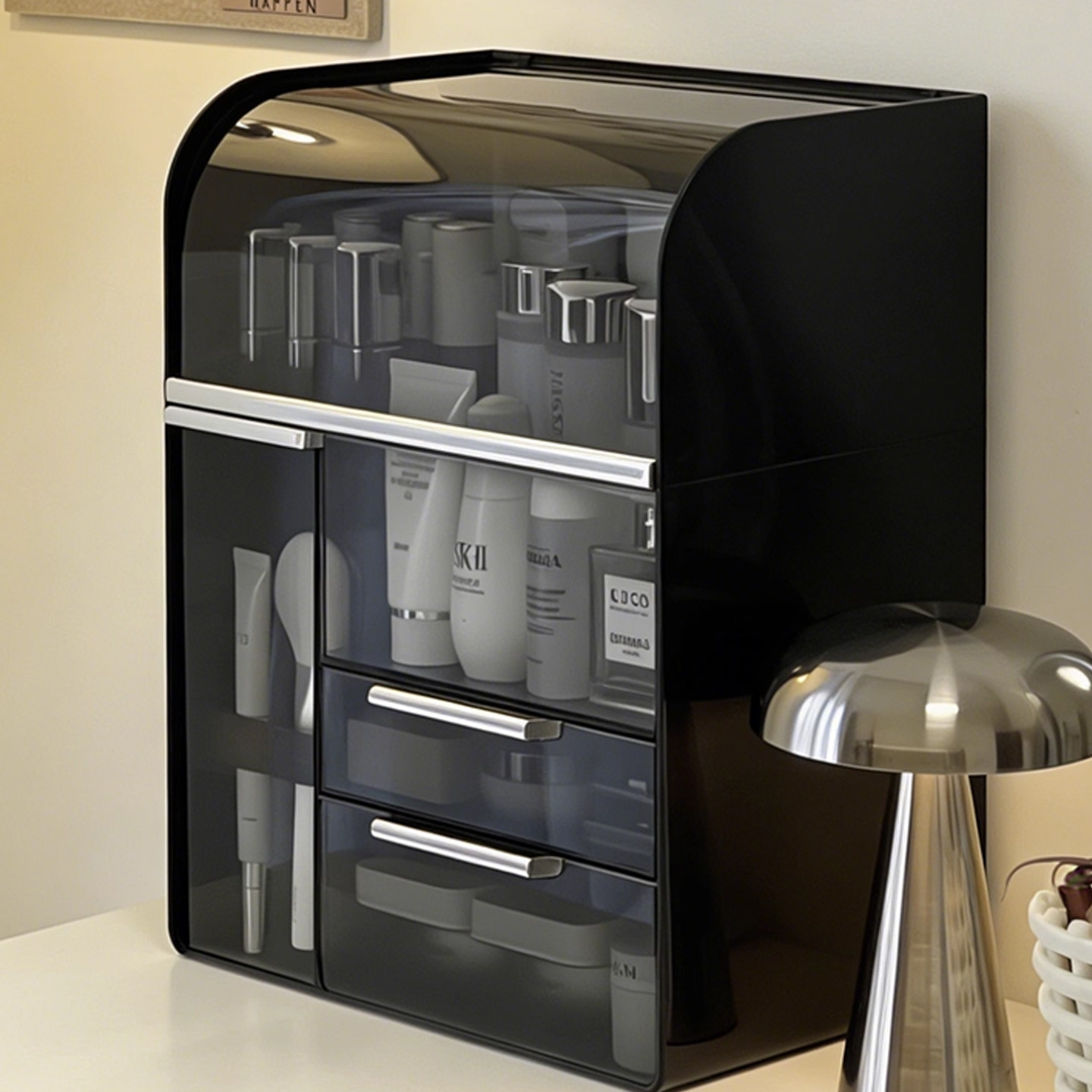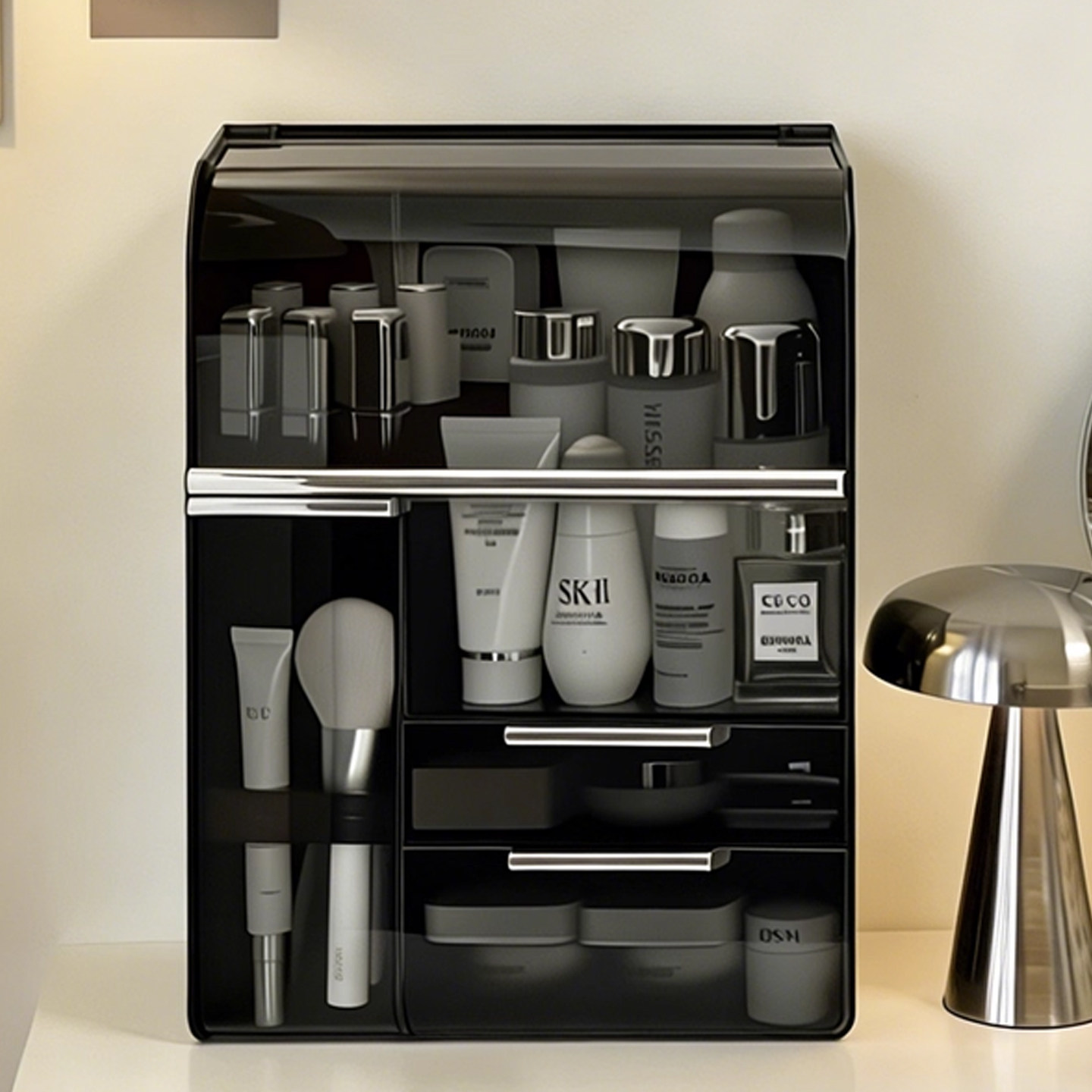 轻奢化妆品收纳盒高级感化妆刷桶梳妆台护肤品整理箱香水口红抽屉