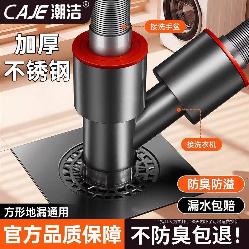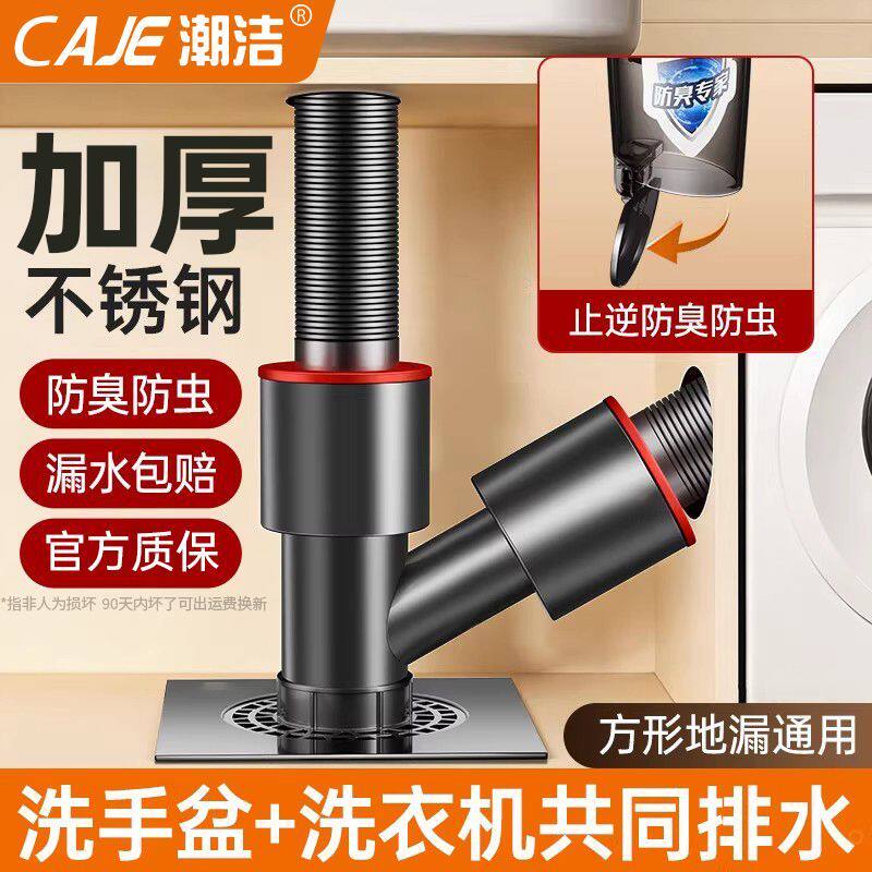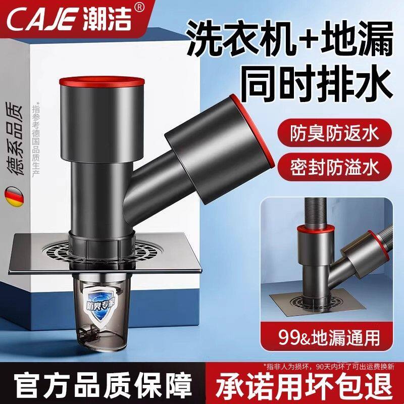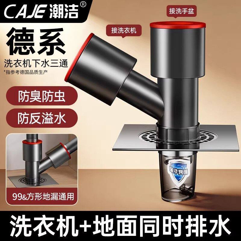 潮洁阳台洗衣机下水器三通排水管道通用地漏接头三通防虫防臭神器