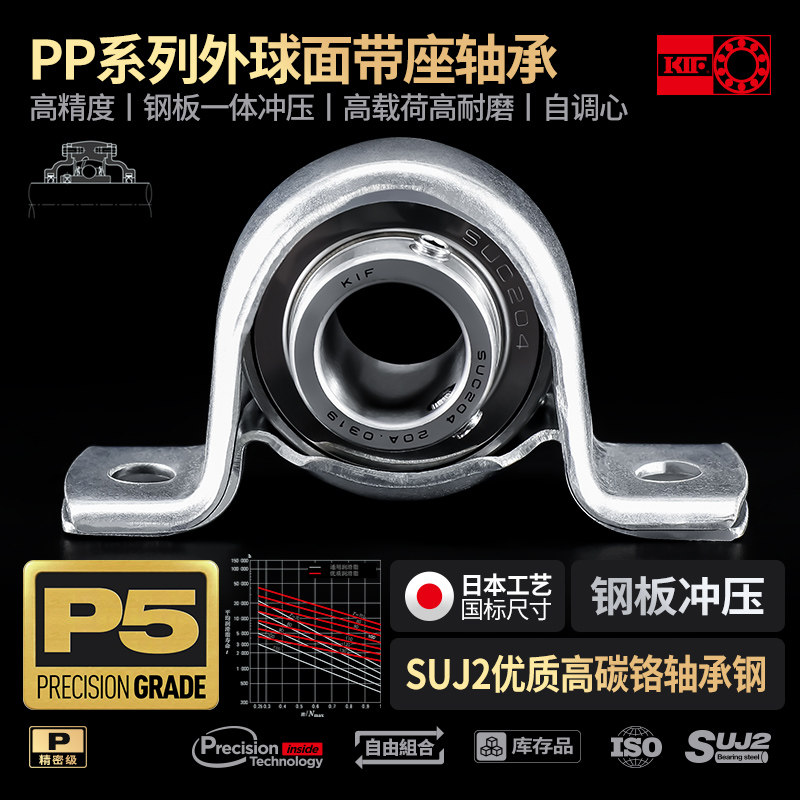 KIF进口PP钢板冲压轴承座外球面带座立式UCPP204 SAPP205 SBPP206