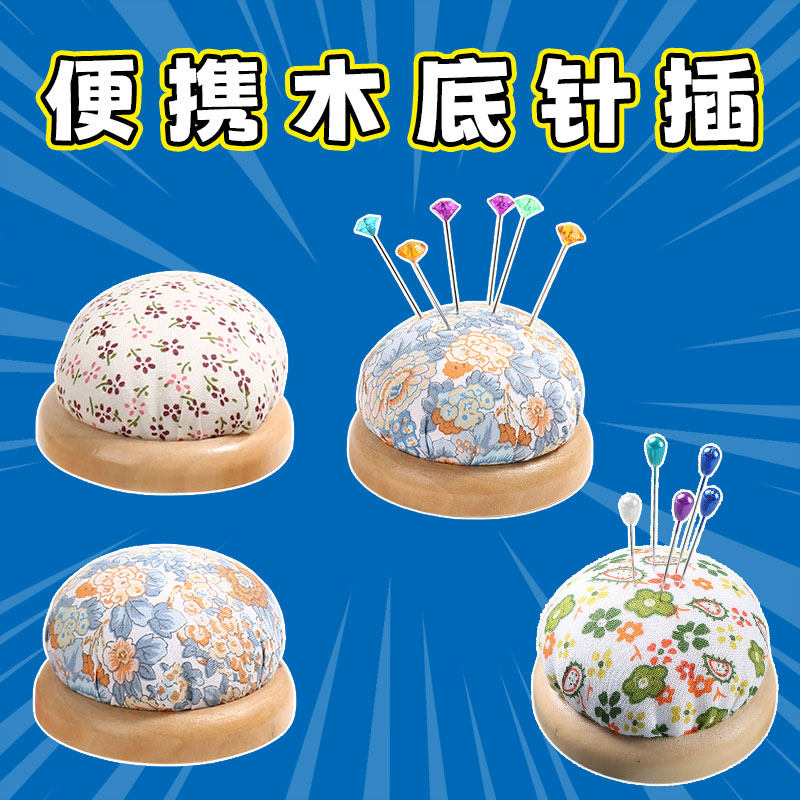针插包手工布艺diy十字绣工具插针包木底座针座针扎彩色珠针插