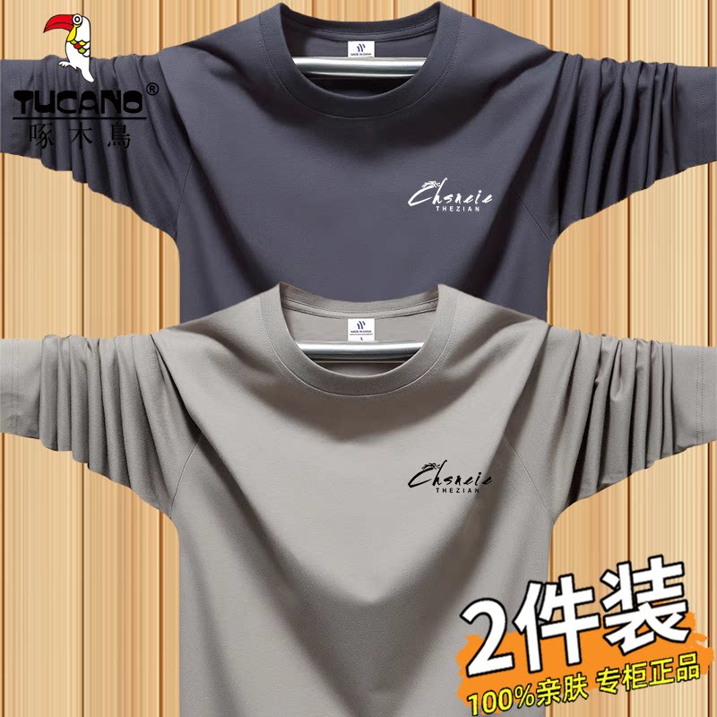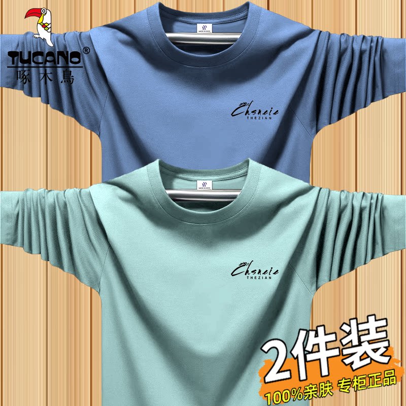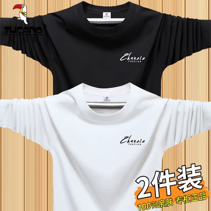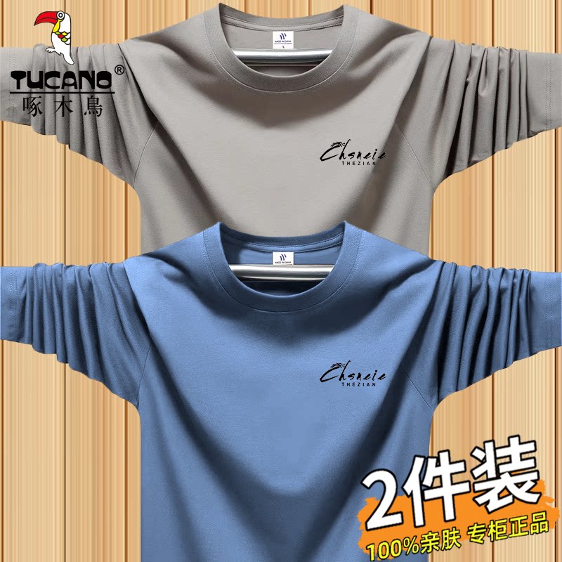 啄木鸟运动休闲长袖t恤男士薄款跑步上衣春秋季宽松大码圆领体恤