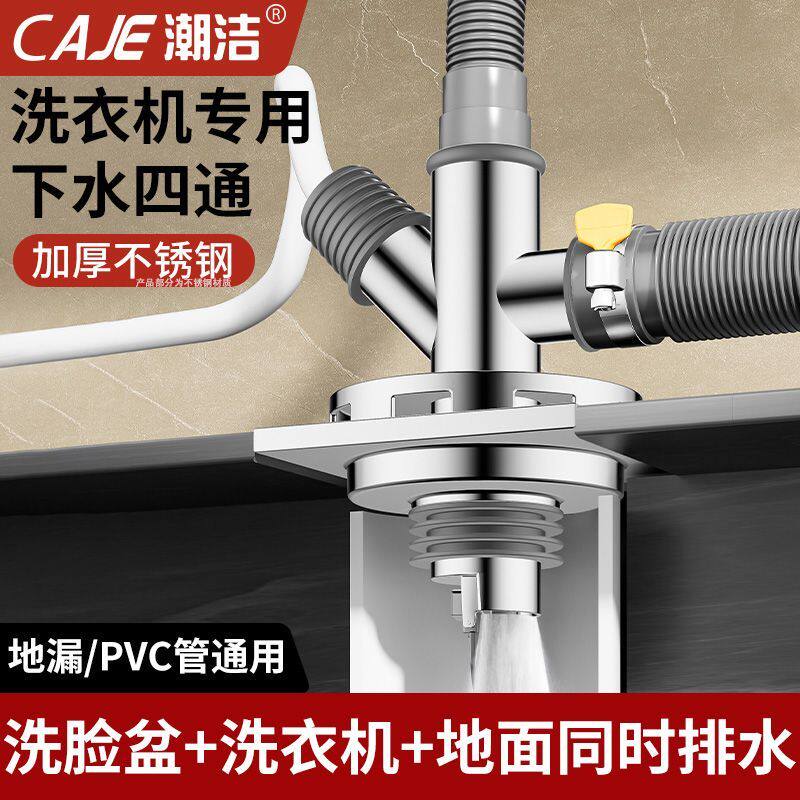 潮洁洗衣机下水管地漏三通接头防臭防溢水断层延长管排水分水流器