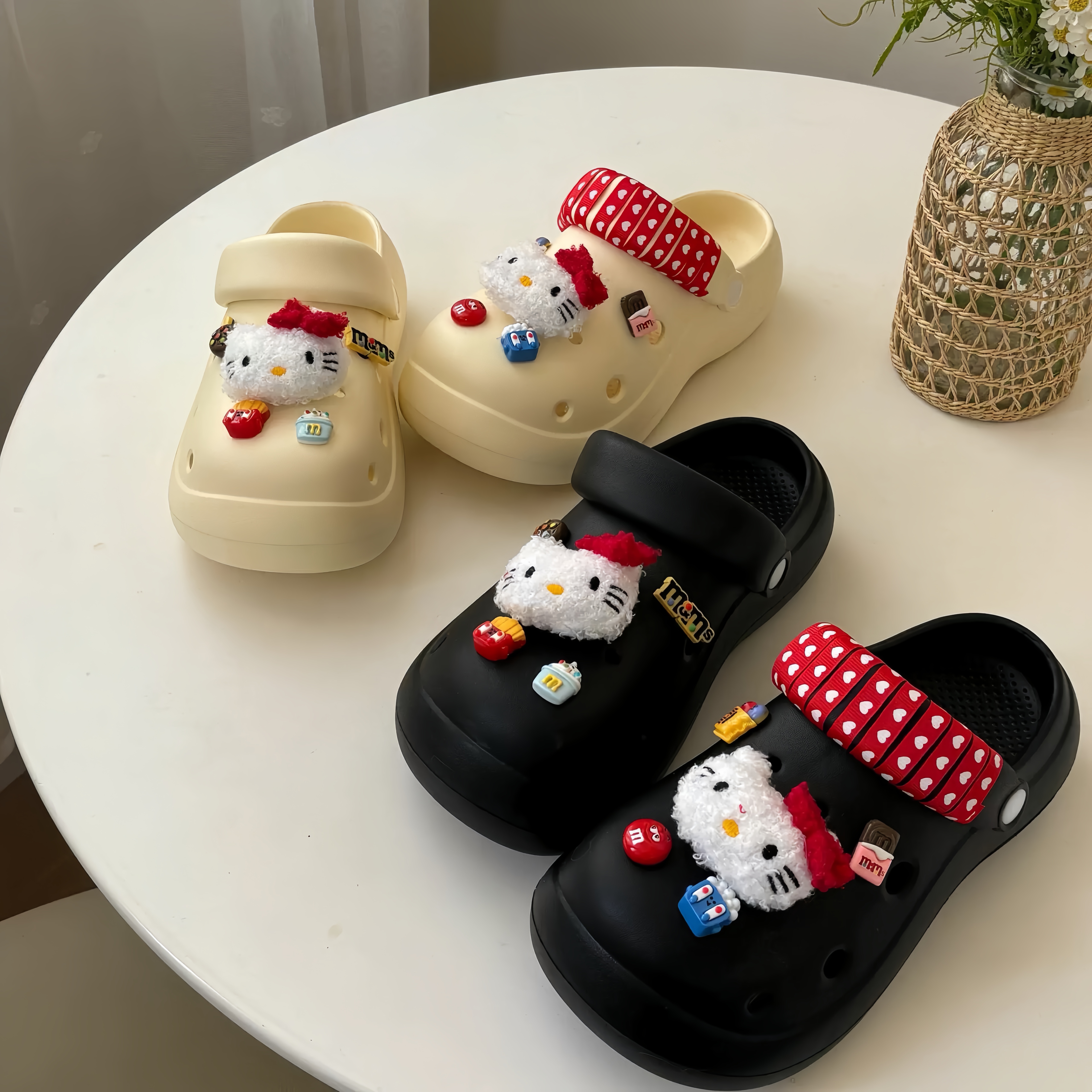 可爱Kitty猫洞洞鞋女款夏外穿2025新款厚底增高巨好看沙滩凉拖鞋