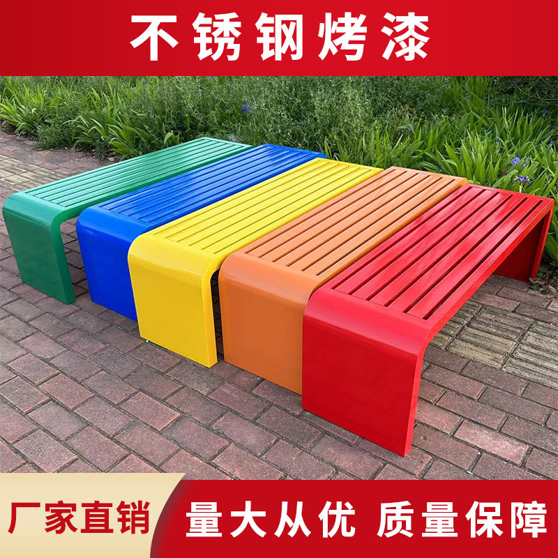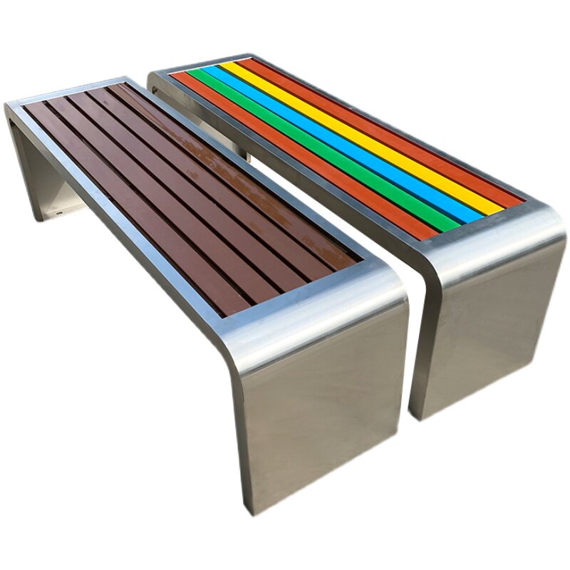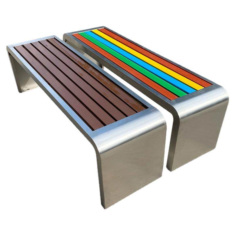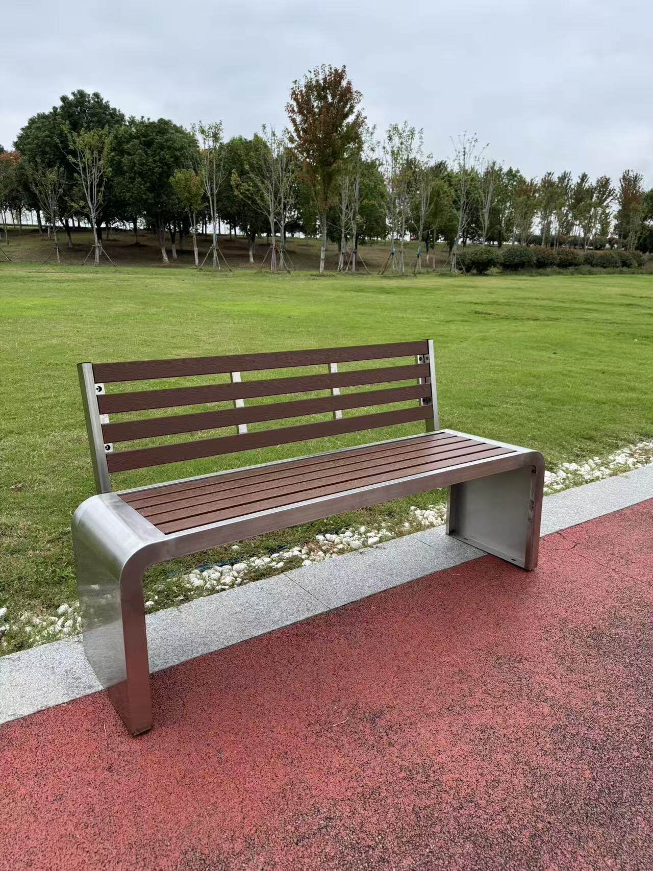 不锈钢公园椅户外长椅园林广场室外长条凳子防腐塑木休闲公共座椅